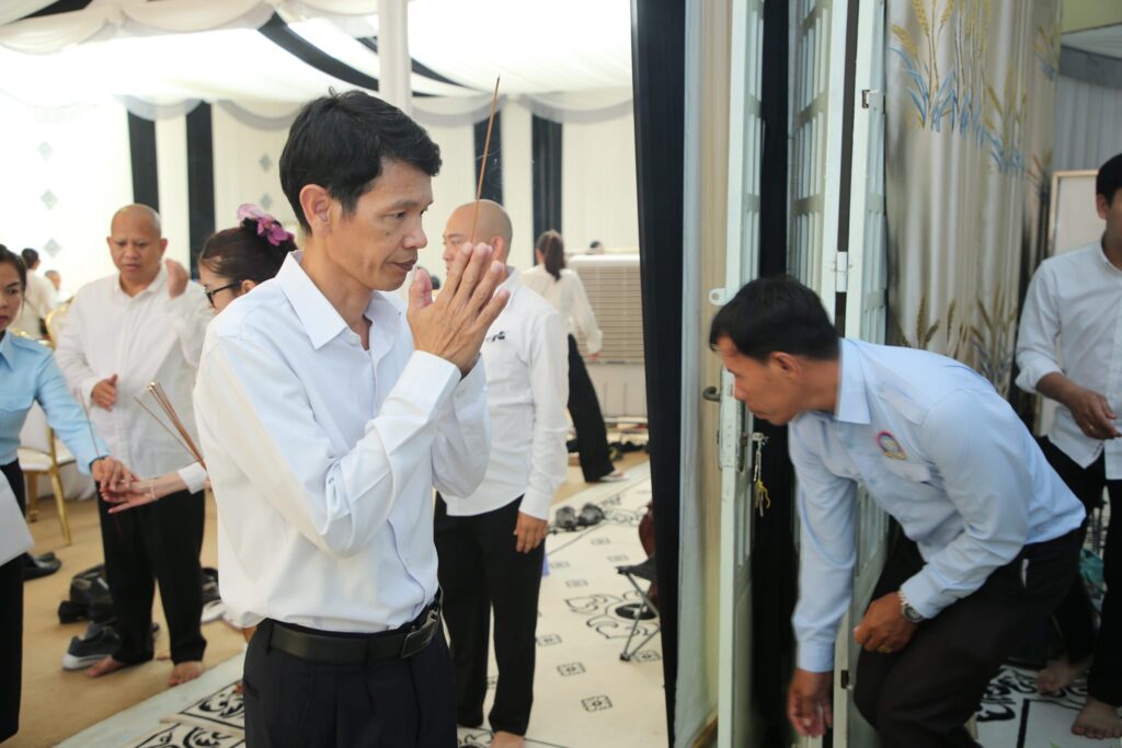ខេត្តកណ្ដាល៖ រសៀលថ្ងៃទី១០ ខែឧសភា ឆ្នាំ២០២៤ ឯកឧត្ដម នូវប៉េង ច័ន្ទតារា អភិបាលរងខេត្តកណ្ដាល តំណាងឯកឧត្ដម គង់ សោភ័ណ្ឌ អភិបាល នៃគណៈអភិបាលខេត្តកណ្ដាល និងជាប្រធានសហភាពសហព័ន្ធយុវជនកម្ពុជាខេត្តកណ្ដាល បានដឹកនាំប្រតិភូ ស.ស.យ.ក ខេត្តកណ្ដាល អញ្ជើញគោរពវិញ្ញាក្ខន្ធសពឯកឧត្តម គឹម សៀប ដែលទទួលមរណៈភាពនៅថ្ងៃពុធ ១កើត ខែពិសាខ ឆ្នាំរោង ឆស័ក ពុទ្ធសករាជ ២៥៦៧ ត្រូវនឹងថ្ងៃទី៨ ខែឧសភា ឆ្នាំ២០២៤ វេលាម៉ោង៤:៤៥នាទីព្រឹក ក្នុងជន្មាយុ ៨៦ឆ្នាំ ដោយជរាពាធ ត្រូវជាឪពុកបង្កើតរបស់ លោក គឹម ចាន់បញ្ញា សមាជិកគណៈកម្មាធិការកណ្តាល សហភាពសហព័ន្ធយុវជនកម្ពុជា ភូមិព្រែកសំរោង៣ សង្កាត់តាខ្មៅ ក្រុងតាខ្មៅ ខេត្តកណ្តាល។