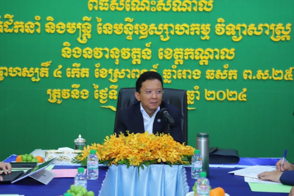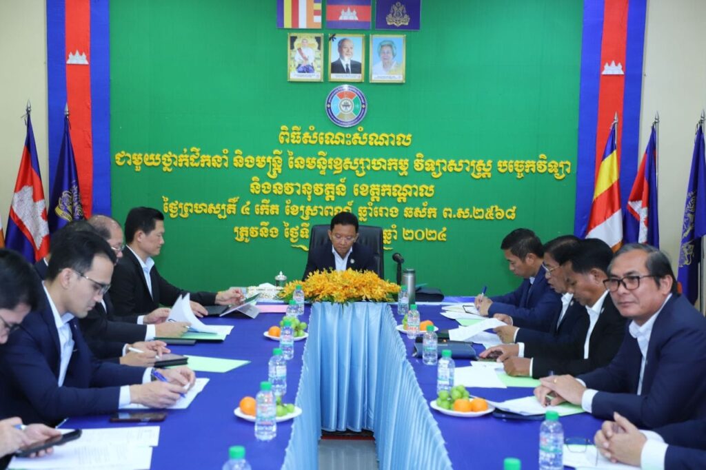 +++++++++++ខេត្តកណ្តាល៖ ព្រឹកថ្ងៃទី០៨ ខែសីហា ឆ្នាំ២០២៤ ឯកឧត្តម ហែម វណ្ណឌី រដ្ឋមន្ត្រីក្រសួង ឧស្សាហកម្ម វិទ្យាសាស្ត្រ បច្ចេកវិទ្យា និងនវានុវត្តន៍ បានជួបសំណេះសំណាលជាមួយមន្ត្រីរាជការ នៃមន្ទីរឧស្សាហកម្ម វិទ្យាសាស្ត្រ បច្ចេកវិទ្យា និងនវានុវត្តន៍ ខេត្តកណ្តាល ដើម្បីនិរន្តរភាពការងារកាន់តែប្រសើរ ដោយបានការចូលរួមពី ឯកឧត្តម ប៊ុន ផេង អភិបាលរងខេត្តកណ្តាល និងឯកឧត្តម លោក-លោកស្រីថ្នាក់ដឹកនាំក្រសួងផងដែរ។ មានប្រសាសន៍សំណេះសំណាលក្នុងឱកាសនោះ ឯកឧត្តម ហែម វណ្ណឌី រដ្ឋមន្ត្រី បានសម្តែងការកោតសរសើរ ចំពោះថ្នាក់ដឹកនាំ និងមន្ត្រីក្រោមឱវាទ នៃមន្ទីរឧស្សាហកម្ម វិទ្យាសាស្ត្រ បច្ចេកវិទ្យា និងនវានុវត្តន៍ ដែលបានខិតខំបំពេញតួនាទី ភារកិច្ចការងារបានយ៉ាងល្អប្រសើរ។ឯកឧត្តមបន្តថា៖ មន្ទីរឧស្សាហកម្មវិទ្យាសាស្ត្រ បច្ចេកវិទ្យា និងនវានុវត្តន៍ ខេត្តកណ្ដាល ជាសេនាធិការឲ្យក្រសួង លើការងារសម្របសម្រួលជាមួយបណ្ដាស្ថាប័ន មន្ទីរអង្គភាពជំនាញនៅរដ្ឋបាលថ្នាក់ក្រោមជាតិ ព្រមទាំងអនុវត្តភារកិច្ចគ្រប់គ្រងវិស័យឧស្សាហកម្ម វិទ្យាសាស្ត្រ បច្ចេកវិទ្យា និងនវានុវត្តន៍ នៅក្នុងខេត្តផ្សព្វផ្សាយ ណែនាំ អនុវត្តគោលនយោបាយ យុទ្ធសាស្ត្រ ទិសដៅ និងផែនការរួមរបស់ក្រសួង គ្រប់គ្រងការងាររដ្ឋបាល និងសម្របសម្រួលសកម្មភាពគ្រប់ផ្នែក ការងារបច្ចេកទេសរបស់មន្ទីរចូលរួមអនុវត្តគោលនយោបាយវិមជ្ឈការ និងវិសហមជ្ឈការរបស់ក្រសួង និងការងារប្រតិភូកម្ម ទៅរដ្ឋបាលថ្នាក់ក្រោមជាតិតាមដាន ជំរុញការងារឧស្សាហកម្ម សិប្បកម្ម និងការងារទឹកស្អាតនៅតាមបណ្តាក្រុងស្រុកចូលរួមអនុវត្តកម្មវិធីកំណែទម្រង់ផ្សេងៗស្របតាមសេចក្តីណែនាំរបស់ក្រសួង ស្ថាប័នជំនាញ សហការជាមួយក្រសួង អនុវត្តការងារបច្ចេកទេស និងសុវត្ថិភាពឧស្សាហកម្មសហការជាមួយអាជ្ញាធរ មន្ទីរ អង្គភាពពាក់ព័ន្ធ ដើម្បីជំរុញការអភិវឌ្ឍវិស័យ STI ចូលរួមគាំទ្រ ផ្សព្វផ្សាយ និងជំរុញការអភិវឌ្ឍវិស័យឧស្សាហកម្ម សិប្បកម្ម SME, STI ទឹកស្អាត សម្របសម្រួល និងអនុវត្តការងារស្តង់ដារ និងមាត្រាសាស្ត្រ។ឯកឧត្តមរដ្ឋមន្ត្រីបានផ្តាំផ្ញើដល់មន្ត្រីរាជការទាំងអស់ បន្តអនុវត្តការងារបម្រើសេវាសាធារណៈ ធ្វើជាសេនាធិការឱ្យថ្នាក់ខេត្ត មន្ទីរ អង្គភាព ស្រុក ក្រុង ទៅតាមតួនាទីភារកិច្ចនិងបង្កើនចំណងសាមគ្គីផ្ទៃក្នុង មានទំនាក់ទំនងល្អជាមួយស្ថាប័នពាក់ព័ន្ធសម្តៅធ្វើយ៉ាងណាឱ្យការងារ ដំណើរការទៅមានភាពរលូន តម្លាភាព។ ត្រូវចុះត្រួតពិនិត្យតាមក្រុមហ៊ុនឯកជនដែលកំពុងធ្វេីអាជីវកម្មទឹកស្អាតជូនប្រជាពលរដ្ឋតេីត្រឹមត្រូវតាមស្តង់ដាដែរឬទេ ព្រោះបេីទឹកមិនស្អាតវាប៉ះពាល់ដល់សុខភាព បរិស្ថាននិងអនាមយ័ក្នុងការរស់នៅ។ ល