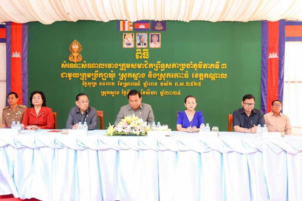 ស្រុកស្អាង៖ ព្រឹកថ្ងៃទី៣០ ខែសីហា ឆ្នាំ២០២៤ នៅសាលាស្រុកស្អាង ពិធីសំណេះសំណាលរវាងក្រុមសមាជិកព្រឹទ្ធសភាប្រចាំភូមិភាគទី៣ ជាមួយក្រុមប្រឹក្សាឃុំ ស្រុកស្អាង និងស្រុកកោះធំ ខេត្តកណ្ដាល ក្រោមអធិបតីភាព ឯកឧត្តម ម៉ម ប៊ុននាង ប្រធានក្រុមសមាជិកព្រឹទ្ធសភាប្រចាំភូមិភាគទី៣។