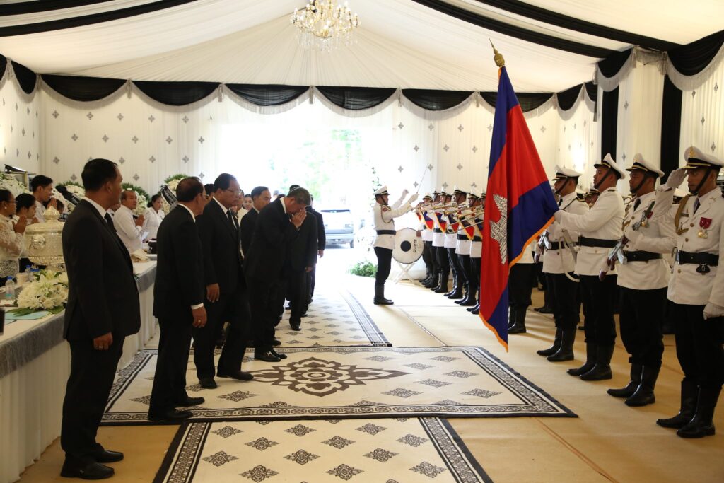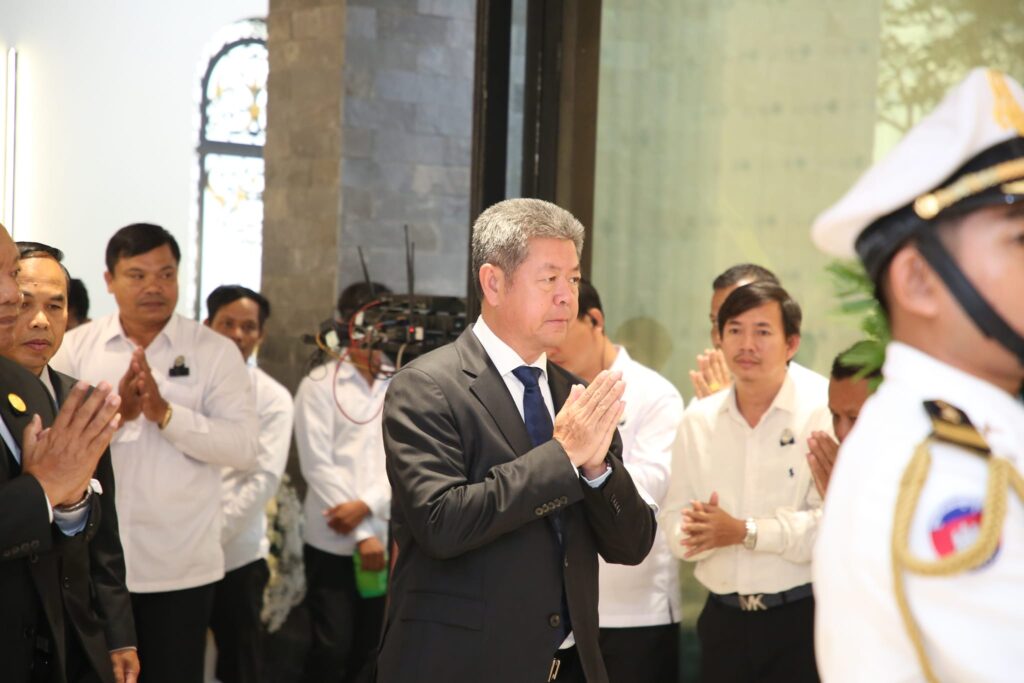 ខេត្តកណ្តាល៖ ឯកឧត្តម នូ សាខន ប្រធានក្រុមប្រឹក្សាខេត្ត និងឯកឧត្តម គួច ចំរើន អភិបាល នៃគណៈអភិបាលខេត្ត នៅព្រឹកថ្ងៃទី៤ ខែកញ្ញា ឆ្នាំ២០២៤នេះ បានដឹកនាំប្រតិភូរដ្ឋបាលខេត្តលណ្តាល រួមមាន៖ ឯកឧត្តម លោកជំទាវ សមាជិកក្រុមប្រឹក្សាខេត្ត អភិបាលរងខេត្ត និងមន្ទីរជុំវិញខេត្ត អញ្ជើញចូលរួមគោរពវិញ្ញាណក្ខន្ធសព សម្ដេចចៅហ្វាវាំង វររៀងជ័យ អធិបតីស្រឹង្គារ គង់ សំអុល ឧបនាយករដ្ឋមន្ត្រី រដ្ឋមន្ត្រីក្រសួងព្រះបរមរាជវាំង និងជាឧត្តមប្រឹក្សាផ្ទាល់ព្រះមហាក្សត្រ នៃព្រះរាជាណាចក្រកម្ពុជា ដែលបានទទួលមរណភាពកាលពីព្រឹកថ្ងៃចន្ទ ១៤រោច ខែស្រាពណ៌ ឆ្នាំរោង ឆស័ក ព.ស.២៥៦៨ ត្រូវនឹងថ្ងៃទី២ ខែកញ្ញា ឆ្នាំ២០២៤ វេលាម៉ោង៨:៣៥នាទីព្រឹក ក្នុងជន្មាយុ ៩៤ឆ្នាំ ដោយជរាពាធ។សិ្ថតក្នុងពេលវេលាប្រកបដោយទុក្ខសោកនេះ ប្រតិភូរដ្ឋបាលខេត្តលណ្តាល បានចូលរួមរំលែកទុក្ខ ជាមួយក្រុមគ្រួសារនៃសព និងសូមឧទ្ទិសបួងសួងដល់គុណបុណ្យព្រះរតនត្រ័យ វត្ថុស័ក្តិសិទ្ធិទាំងឡាយក្នុងលោក សូមជួយដឹកនាំដួងវិញ្ញាណក្ខន្ធរបស់សម្តេចចៅហ្វាវាំង វរវៀងជ័យ អធិបតីស្រឹង្គារ គង់ សំអុល បានទៅសោយសុខក្នុងឋានសុគតិភពកុំបីឃ្លៀងឃ្លាតឡើយ។