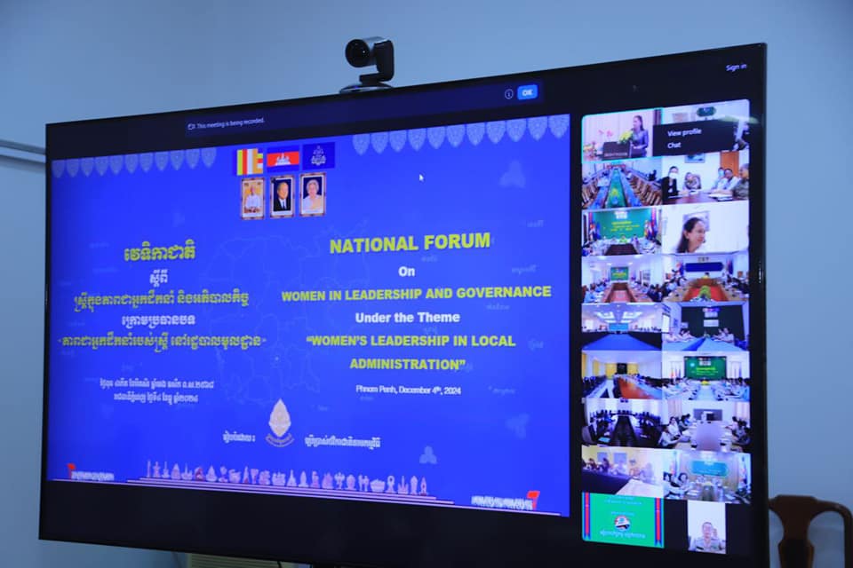 ខេត្តកណ្ដាល៖ ព្រឹកថ្ងៃទី០៤ ខែធ្នូ ឆ្នាំ២០២៤ លោកជំទាវ ស្រ៊ុន ស្រីនាង អភិបាលរងខេត្តកណ្ដាល ព្រមទាំងលោកជំទាវសមាជិកក្រុមប្រឹក្សាខេត្ត លោកស្រីជាប្រធាន និងជាអនុប្រធានមន្ទីរ-អង្គភាពជុំវិញខេត្ត និងរដ្ឋបាលក្រុង-ស្រុកទាំង១៣ បានចូលរួមប្រជុំតាមប្រព័ន្ធ(zoom) រៀបចំឡើងដោយក្រសួងកិច្ចការនារី ស្តីពីវេទិកាជាតិ «ស្ត្រីក្នុងភាពជាអ្នកដឹកនាំ និងអភិបាលកិច្ច” ឆ្នាំ២០២៤ ក្រោមប្រធានបទ “ភាពជាអ្នកដឹកនាំរបស់ស្ត្រីនៅមូលដ្ឋាន» ក្រោមអធិបតីភាពដ៏ខ្ពង់ខ្ពស់សម្ដេចកិតិ្តសិង្គហបណ្ឌិត ម៉ែន សំអន ឧត្តមប្រឹក្សាផ្ទាល់ព្រះមហាក្សត្រ នៃព្រះរាជាណាចក្រកម្ពុជា និងជាប្រធានសមាគមនារីកម្ពុជាដើម្បីសន្តិភាព និងអភិវឌ្ឍន៍។