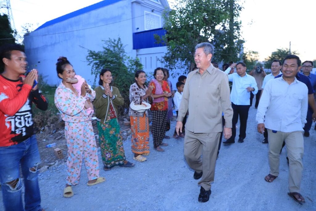ប្រជាពលរដ្ឋក្នុងភូមិព្រែករាំង១ សង្កាត់កំពង់សំណាញ់ ក្រុងតាខ្មៅ បានអបអរសាទរ និងថ្លៃអំណរគុណឯកឧត្តម គួច ចំរើន អភិបាល នៃគណៈអភិបាលខេត្តកណ្តា ដែលបានសាងសង់ផ្លូវបេតុងពីរខ្សែជូនពួកគាត់។++++++++++++++ខេត្តកណ្តាល៖ រសៀលថ្ងៃទី១៨ ខែធ្នូ ឆ្នាំ២០២៤ ឯកឧត្តម គួច ចំរើន អភិបាល នៃគណៈ អភិបាលខេត្តកណ្តាល រួមជាមួយមន្ទីរអង្គភាពជុំវិញខេត្ត អាជ្ញាធរក្រុងតាខ្មៅ អញ្ជើញចុះពិនិត្យការសាងសង់ផ្លូវបេតុង ចំនួន ២ខ្សែ ទទឹង ៥ម៉ែត្រ បណ្ដោយ ៤៣៥ម៉ែត្រ កម្រាស់០.១៥ម៉ែត្រ និងទទឹង ៥ម៉ែត្រ បណ្ដោយ ៣១៥ម៉ែត្រ កម្រាស់០.១៥ម៉ែត្រ ស្ថិតនៅភូមិព្រែករាំង១ សង្កាត់កំពង់សំណាញ់ ក្រុងតខ្មៅ ខេត្តកណ្តាល។ប្រជាពលរដ្ឋនៅក្នុងភូមិព្រែករាំង១ បានឱ្យដឹងថា កន្លងមកផ្លូវនេះជួបការលំបាកខ្លាំង ក្នុងការធ្វើដំណើរទៅវិញទៅមកប្រចាំថ្ងៃ ពិសេសការដឹកកសិផល ដែលនាំឱ្យជួបការលំបាក នារដូវវស្សាម្ដងៗ ផ្លូវនេះតែងតែរងការជនលិចដោយចំណុចភ្លៀង ហើយនៅពេលនេះរដ្ឋបាលខេត្តកណ្ដាល បានធ្វើការសាងសង់ផ្លូវបេតុងជូនពួកគាត់នៅពេលនេះ ជួយសម្រួលដល់ការធ្វើដំណើររបស់ពួកគាត់ ពិសេសពួកគាត់អស់ក្ដីព្រួយបារម្ភនៅពេលមានភ្លៀងធ្លាក់ម្ដងៗ ពិសេសនៅរដូវប្រសារឈានចូលមកដល់។ ក្នុងឱកាសនោះដែរប្រជាពលរដ្ឋក្នុងភូមិព្រែកសំរោង១ មានការសប្បាយរីករាយ និងសូមថ្លែងអំណរគុណ ឯកឧត្តម គួច ចំរើន អភិបាល នៃគណៈអភិបាលខេត្តកណ្ដាល ដែលបានជួយកសាងផ្លូវជូនពួកគាត់។
