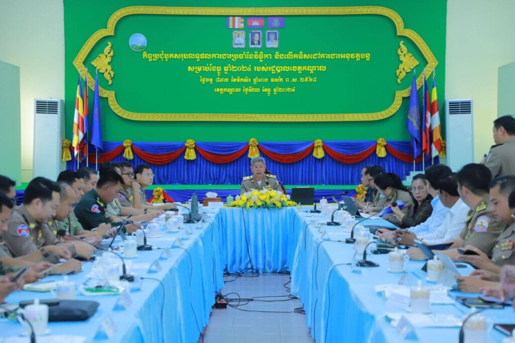 +++++++++++++++++++ខេត្តកណ្ដាល៖ ឯកឧត្តម គួច ចំរើន អភិបាល នៃគណៈអភិបាលខេត្តកណ្ដាល អញ្ជើញជាអធិបតីភាពដឹកនាំកិច្ចប្រជុំបូកសរុបលទ្ធផលការងារប្រចាំខែវិច្ឆិកា និងលើកទិសដៅការងារ អនុវត្តបន្តសម្រាប់ខែធ្នូ ឆ្នាំ២០២៤ របស់រដ្ឋបាលខេត្តកណ្តាល នារសៀលថ្ងៃទី២៣ ខែធ្នូ ឆ្នាំ២០២៤ នៅសាលប្រជុំសាលាខេត្តកណ្ដាល។មានប្រសាសន៍ក្នុងកិច្ចប្រជុំ ឯកឧត្តមអភិបាលខេត្តកណ្ដាល បានថ្លែងនូវការកោតសរសើរ ដល់គណៈបញ្ជាការឯកភាពរដ្ឋបាលខេត្ត ក្រុង-ស្រុក ដែលបានខិតខំយកចិត្តទុកដាក់ ក្នុងការការពារសន្តិសុខ សណ្តាប់ធ្នាប់សាធារណៈ ដោយអនុវត្តនូវគោលនយោបាយ "ភូមិ ឃុំ មានសុវត្ថិភាព" នៅមូលដ្ឋានរបស់ខ្លួនបានយ៉ាងល្អប្រសើរ។ ទន្ទឹមនឹងនោះក្នុងឱកាសបុណ្យចូលឆ្នាំសកល ២០២៥ខាងមុខនេះ ឯកឧត្តមអភិបាលខេត្តកណ្ដាល បានណែនាំដល់ គណៈបញ្ជាការឯកភាពរដ្ឋបាលខេត្ត ក្រុង-ស្រុក យកចិត្តទុកដាក់រក្សាសន្តិសុខ សណ្តាប់ធ្នាប់របៀបរៀបរយនៅតាមទីកន្លែងរៀបចំពិធីឆ្លងឆ្នាំ និងរមណីយដ្ឋាន កន្លែងកំសាន្តសប្បាយ ដោយកំណត់មុខសញ្ញាផ្សេងៗ ដើម្បីបង្ការ ទប់ស្កាត់មិនឱ្យកើតមាន បទល្មើសព្រហ្មទណ្ឌគ្រប់ប្រភេទ ជាពិសេសសកម្មភាពបង្កការអុកឡុកដោយជនទំនើង និងត្រូវរៀបចំសណ្តាប់ធ្នាប់ឱ្យបានល្អប្រសើរ។ យកចិត្តទុកដាក់រៀបចំសណ្តាប់ធ្នាប់ចរាចរណ៍ បង្ការភាពកកស្ទះ និងបង្កើនការរឹតបន្តឹងការអនុវត្តច្បាប់ចរាចរណ៍ផ្លូវគោក សំដៅកាត់បន្ថយគ្រោះថ្នាក់ចរាចរណ៍ និងបង្កលក្ខណៈឱ្យប្រជាពលរដ្ឋធ្វើដំណើរទៅសួរសុខទុក្ខបងប្អូន ឬទៅកំសាន្តតាមតំបន់រមណីយដ្ឋាននានា ប្រព្រឹត្តទៅដោយក្តីសប្បាយរីករាយ និងសុវត្ថិភាព។