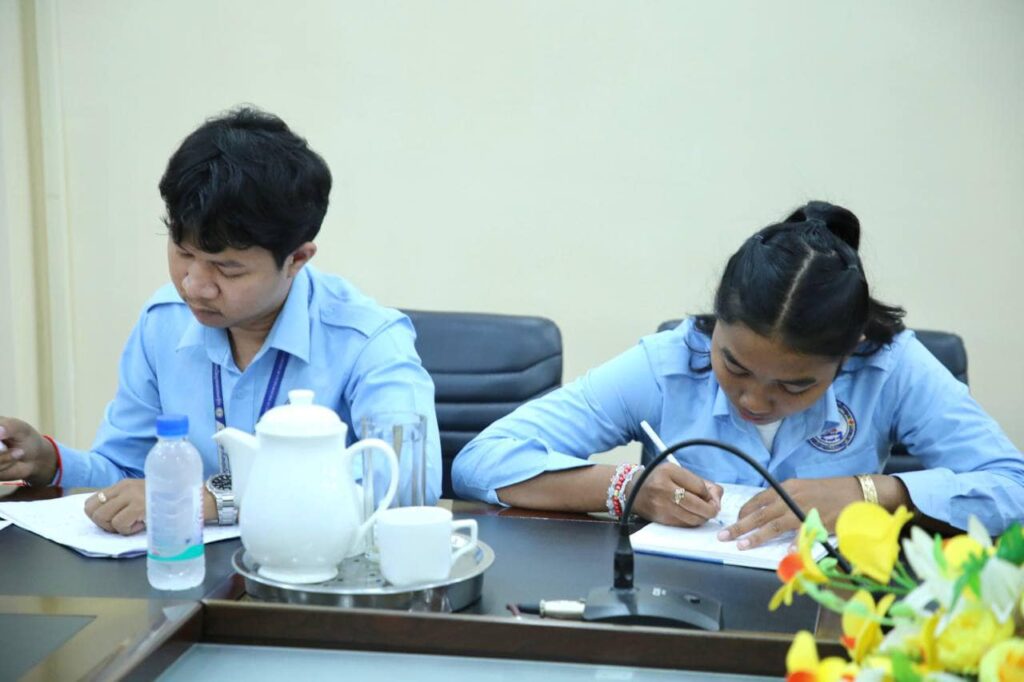 ................. ថ្លែងការស្វាគមន៍ចំពោះប្អូនៗនិស្សិតឆ្នាំទី៤ នៃពុទ្ធិកសាកលវិទ្យាល័យព្រះសីហនុរាជមួយក្រុម ដែលបានចុះមកសិក្សាស្វែងយល់ពីប្រព័ន្ធការងារ និងការគ្រប់គ្រងធនធានមនុស្សនៃមន្ទីរព័ត៌មានខេត្តកណ្តាល ដើម្បីធ្វើជាសារណាបញ្ចប់ការសិក្សាថ្នាក់បរិញ្ញាបត្ររបស់ខ្លួន នៅថ្ងៃទី ១៦ ខែមករានេះ លោក ចាប វន្នី ប្រធានមន្ទីរព័ត៌មានខេត្តកណ្តាល បានបង្ហាញការស្វាគមន៍យ៉ាងកកក្តៅចំពោះប្អូនៗក្មួយៗដែល ជានិស្សិតនៃពុទ្ធិកសាកលវិទ្យាល័យព្រះសីហនុរាជ ដែលបានចុះមកសិក្សាស្វែងយល់ពីប្រព័ន្ធការងារ និងការគ្រប់គ្រងធនធានមនុស្សនៃមន្ទីរព័ត៌មាន។ លោកប្រធានមន្ទីរបានធ្វើការពន្យល់ និងបង្ហាញពីសកម្មភាពការងារសំខាន់ៗមួយចំនួនរបស់មន្ទីរព័ត៌មានខេត្តកណ្តាល ដែលបាននឹងកំពុងអនុវត្តន៍ជាប្រចាំថ្ងៃ ដើម្បីផ្តល់ជាធាតុចូលសំខាន់ៗសំរាប់ដល់ប្អូនៗនិស្សិតអាចយកទៅចងក្រង និងរៀបចំធ្វើជាសារណាសំរាប់គាំទ្រដល់បញ្ចប់ថ្នាក់បរិញ្ញាប័ត្ររបស់ប្អូនៗ ។ នៅក្នុងដំណើរមកទស្សនកិច្ចសិក្សា និងស្វែងយល់ប្រព័ន្ធការងារ និងការគ្រប់គ្រងធនធានមនុស្សនៃមន្ទីរព័ត៌មានខេត្តកណ្តាលនៅពេលនេះដែរ និស្សិតឈ្មោះ សំ បញ្ញារស្មី ដែលជាអ្នកដឹកក្រុមនិស្សិតមកនេះ បានបង្ហាញពីការអរគុណដល់លោក ចាប វន្នី ប្រធានមន្ទីរព័ត៌មានខេត្តកណ្តាល ដែលបានទទួលស្វាគមន៍ក្រុមប្អូនយ៉ាងកកក្តៅ បានពន្យល់ និងបង្ហាញពីសកម្មភាពការងារនានាដែលមន្ទីរកំពុងអនុវត្ដ ដោយបានផ្តល់ភាពងាយស្រួលជាច្រើនដល់ក្រុមប្អូនអាចប្រមូលនូវទិន្នន័យ និងព័ត៌មានផ្សេងៗ ដើម្បីគាំទ្រដល់ការធ្វើសារណាបញ្ចប់ថ្នាក់បរិញ្ញាបត្រនេះ ៕