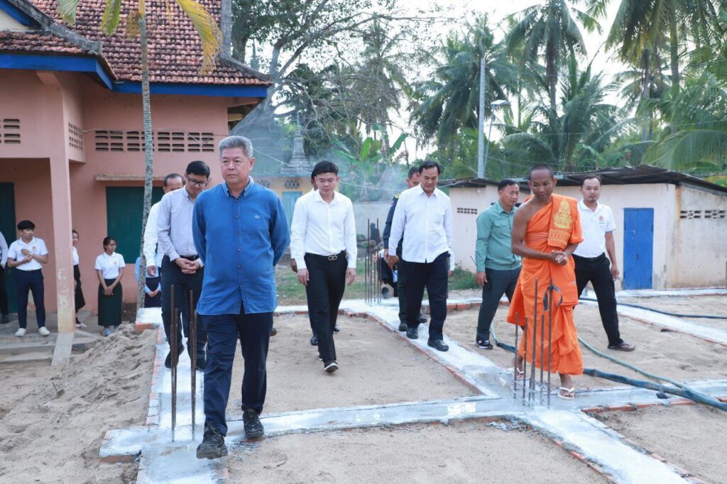 ខេត្តកណ្ដាល៖ រសៀលថ្ងៃទី២០ ខែកុម្ភៈ ឆ្នាំ២០២៥ ឯកឧត្ដម គួច ចំរើន អភិបាល នៃគណៈខេត្តកណ្ដាល បានដឹកនាំមន្ត្រីជំនាញ និងអាជ្ញាធរស្រុកកៀនស្វាយ អញ្ជើញចុះពិនិត្យការដ្ឋានសាងសង់អគារសាលាបឋមសិក្សាជ័យឧត្ដម ស្ថិតនៅវត្តជ័យឧត្ដម ស្រុកកៀនស្វាយ ខេត្តកណ្ដាល។សូមបញ្ជាក់ផងដែរថា៖ អគារសិក្សា១ខ្នងនេះមានកម្ពស់២ជាន់ ស្មើ១៦បន្ទប់ បណ្ដោយ ៧៣ម៉ែត្រ និងទទឹង១០ម៉ែត្រ សាលាបឋមសិក្សាជ័យឧត្ដម មានសិស្សសរុបចំនួន៥២០នាក់ ដោយមានការជួយឧបត្ថម្ភការសាងសង់ដោយព្រះចៅអធិការវត្តជ័យឧត្ដម។