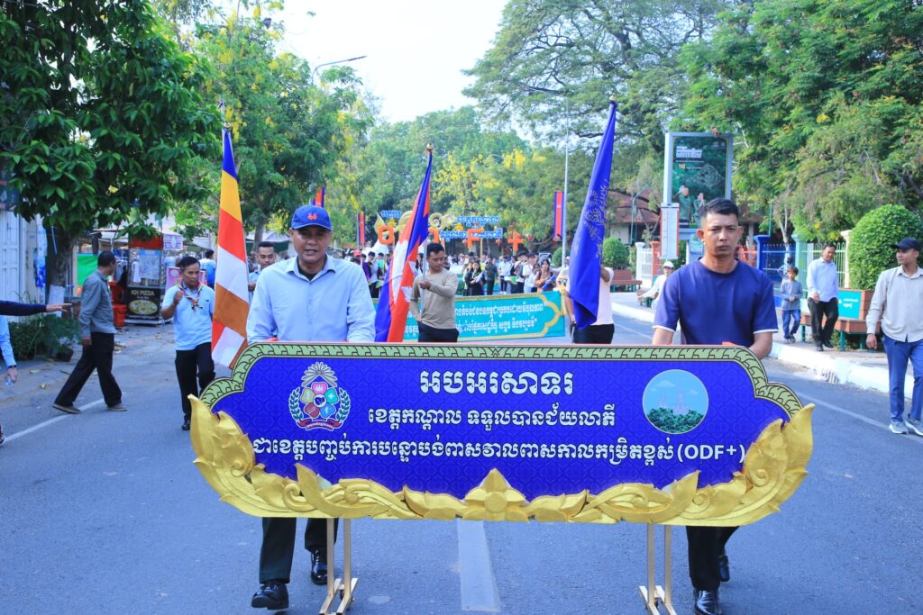 ខេត្តកណ្តាល ត្រៀមរៀបចំពិធីទទួលជ័យលាភី ជាខេត្តបញ្ចប់ ODF+កំរឹតខ្ពស់ នារសៀលថ្ងៃទី២៤ ខែមីនាឆ្នាំ២០២៥ នៅសួនច្បារមាត់ទន្លេក្រុងតាខ្មៅ ខេត្តកណ្តាល ក្រោមការត្រួតពិនិត្យពីសំណាក់ឯកឧត្តម នុត ពុធដារ៉ា អភិបាលរងខេត្តកណ្តាល និងជាប្រធាន PWG។ការត្រៀមរៀបចំពិធីអបអរសាទរ ទទួលជយ័លាភី ជាខេត្តបញ្ចប់ការបន្ទោរបង់ពាសវាលពាសកាល កំរឹតខ្ពស់(ODF+) និងប្រារព្វធ្វើឡើង នៅទីតាំងច្រមុះជ្រូក សួនច្បារមាត់ទន្លេបាសាក់ ក្រុងតាខ្មៅ នាព្រឹកថ្ងៃទី២៥ ខែមីនាឆ្នាំ២០២៥ ស្អែកនេះ ក្រោមអធិបតីភាព ឯកឧត្តម ឆាយ ឫទ្ធិសែន រដ្ឋមន្ត្រីក្រសួងអភិវឌ្ឍន៍ជនបទ។ការរៀបចំពិធីនេះឡើង គឺក្នុងគោលបំណង លើកទឹកចិត្ត ជូនរដ្ឋបាលក្រុង ស្រុក ឃុំ សង្កាត់ ជាពិសេស រដ្ឋបាលខេត្តកណ្ដាល ក៏ដូចជា ការលើកទឹកចិត្ត ផងដែរ ដល់ក្រុមការងារបច្ចេកទេស វិស័យផ្គត់ផ្គង់ទឹកស្អាត សុខភាព និងអនាម័យជនបទខេត្ត(PWG)៕