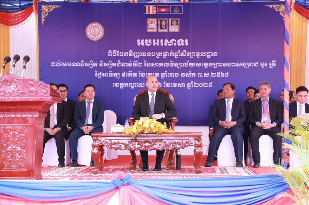 ខេត្តកណ្តាល៖ព្រឹកថ្ងៃទី៦ ខែមេសា ឆ្នាំ២០២៥ ឯកឧត្តម នូ សាខន ប្រធានក្រុមប្រឹក្សាខេត្ត និងឯកឧត្តម គួច ចំរើន អភិបាល នៃគណៈអភិបាលខេត្ត បានអញ្ជើញចូលរួមក្នុងពីធីចែកវិញ្ញាបនបត្រថ្នាក់មូលដ្ឋាន ដល់សមណនិស្សិត និស្សិតជំនាន់ទី២ នៃសាកលវិទ្យាល័យសម្តេចព្រះមហាសង្ឃរាជ បួរ គ្រី ស្ថិតក្នុងភូមិត្រពាំងក្រពើ ឃុំក្រាំងម្កាក់ ស្រុកអង្គស្នួល ខេត្តកណ្តាល ក្រោមធិបតីភាព ឯកឧត្តម ហ៊ុន ម៉ានី ឧបនាយករដ្ឋមន្ត្រី រដ្ឋមន្ត្រី ក្រសួងមុខងារសាធារណៈ៕