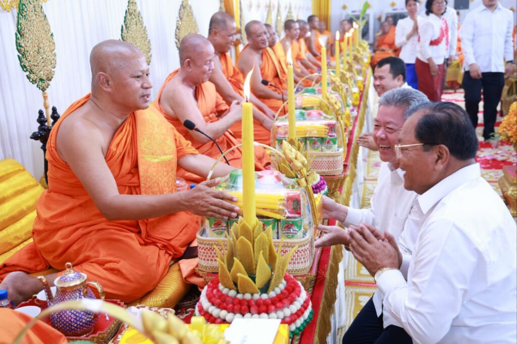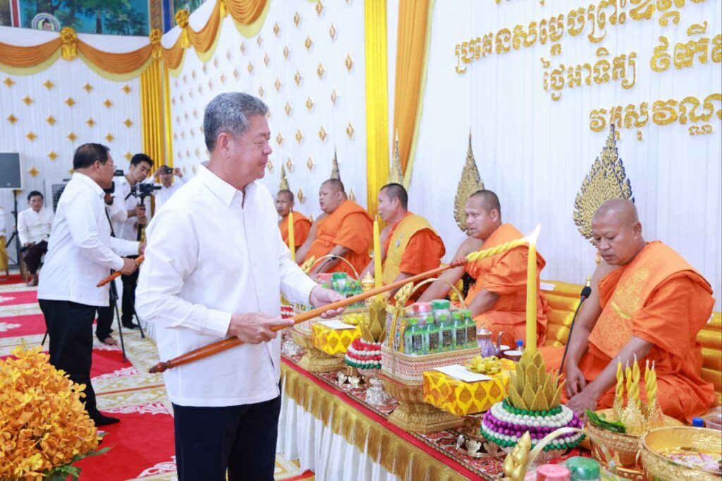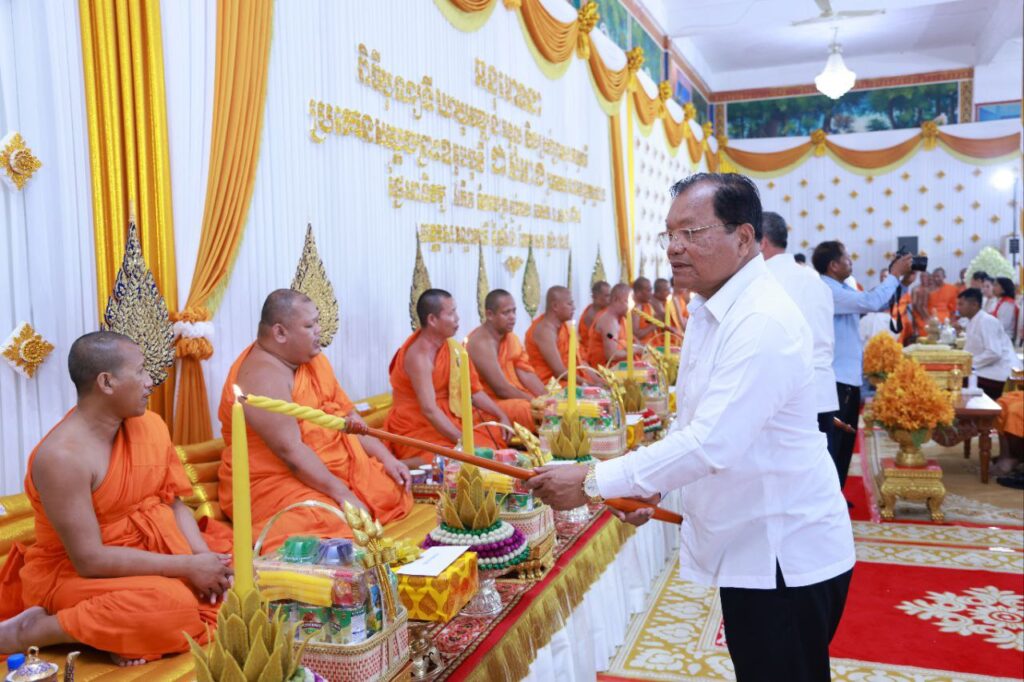 ខេត្តកណ្ដាល ៖ រសៀលថ្ងៃទី០៦ ខែមេសា ឆ្នាំ២០២៥ ឯកឧត្ដម នូ សាខន ប្រធានក្រុមប្រឹក្សាខេត្តកណ្ដាល និងឯកឧត្ដម គួច ចំរើន អភិបាល នៃគណៈអភិបាលខេត្តកណ្ដាល បានអញ្ជើញចូលរួមក្នុងពិធីបុណ្យទីឃាយុវឌ្ឍនៈ មង្គល និងស្រង់ព្រះសុគន្ធវារី ប្រគេនសម្តេចព្រះឧត្តមមុនី ជា សំអាង ព្រះមេគណខេត្តកណ្តាល និងជាព្រះចៅអធិរាជវត្តសុវណ្ណវារី ហៅវត្តព្រែកតាទែន ស្ថិតនៅឃុំព្រែកតាទែន ស្រុកពញាឮ ខេត្តកណ្តាល។