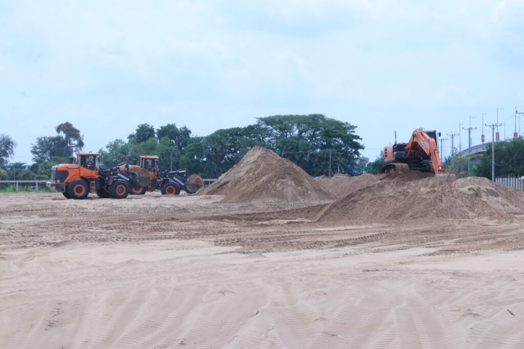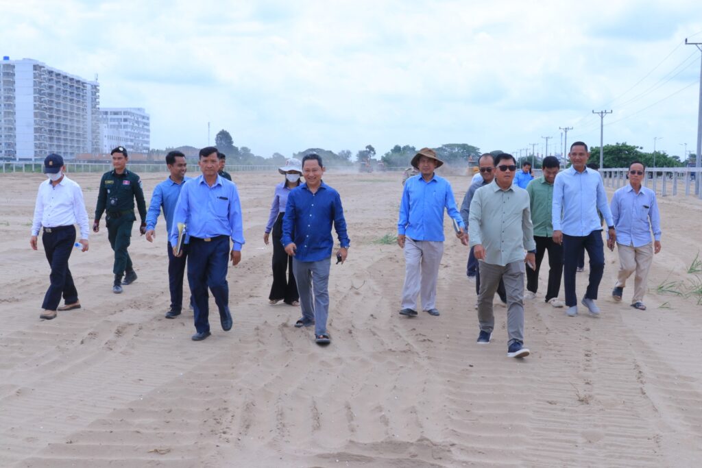 ខេត្តកណ្តាល៖ព្រឹកថ្ងៃទី២២ ខែមេសា ឆ្នាំ២០២៥ ឯកឧត្តម ហាក់ សុខមករា អភិបាលរងខេត្តកណ្តាល បានអញ្ជើញចុះពិនិត្យទីតាំងករណីចាក់បំពេញខ្សាច់ក្នុងគម្រោងសាងសង់អគារទីស្នាក់ការត្រួតពិនិត្យ និងហេដ្ឋារចនាសម្ព័ន្ធច្រកទ្វារព្រំដែនអន្តរជាតិជ្រៃធំ ស្ថិតក្នុងក្រុងសំពៅពូន ខេត្តកណ្តាល ការចុះពិនិត្យនេះមានការចូលរួមពីមន្ទីរអង្គភាពពាក់ព័ន្ធ អាជ្ញាធរមូលដ្ឋាន និងអ្នកពាក់ព័ន្ធជាច្រើនរូប៕