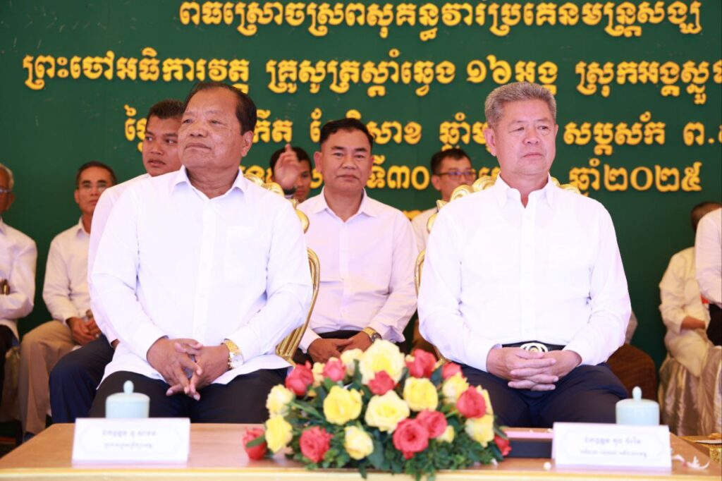 ខេត្តកណ្ដាល ៖ រសៀលថ្ងៃទី៣០ ខែមេសា ឆ្នាំ២០២៥ នៅវត្តអង្គពពាយមានជ័យ ឃុំក្រាំងម្កាក់ ស្រុកអង្គស្នួល ខេត្តកណ្ដាល បានរៀបចំពិធីស្រោចស្រពសុគន្ធវារី ព្រះមន្ត្រីសង្ឃអនុគណស្រុកអង្គស្នួល និងព្រះចៅ អធិការវត្ត គ្រូសូធ្យស្តាំ និងគ្រូសូធ្យឆ្វេង ចំនួន ១៦អង្គ វត្តអង្គពពាយមានជ័យ ក្រោមព្រះរាជធិបតី សម្តេចព្រះពោធិវ័ង្សកិត្តិ បណ្ឌិត ណយ ច្រឹក សម្តេចព្រះសង្ឃនាយករងទី ១ នៃព្រះរាជាណាចក្រកម្ពុជា និងគណៈអធិបតីឯកឧត្ដម នូ សាខន ប្រធានក្រុមប្រឹក្សាខេត្តកណ្ដាល និងឯកឧត្ដម គួច ចំរើន អភិបាល នៃគណៈអភិបាលខេត្តកណ្ដាល។