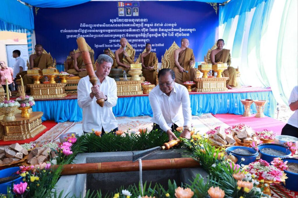 +++++++++++++++++ខេត្តកណ្តាល៖ អគារសិក្សាថ្មី នៃវិទ្យាល័យសម្ដេចសង្ឃរាជ្យ បួរ គ្រី កម្ពស់ ៥ជាន់ ស្មើនឹង ៤០បន្ទប់ មានទទឹង ៩ម៉ែត្រ បណ្ដោយ ៨៩ម៉ែត្រ ជាអំណោយដ៏ថ្លៃថ្លារបស់សម្តេចអគ្គមហាសេនាបតីតេជោ ហ៊ុន សែន បិតាស្ថាបនិកសន្តិភាពកម្ពុជា ប្រធានព្រឹទ្ធសភា នៃព្រះរាជាណាចក្រកម្ពុជា និងសម្តេចកិត្តិព្រឹទ្ធបណ្ឌិត ប៊ុន រ៉ានី ប្រធានកាកបាទក្រហមកម្ពុជា ត្រូវបានបញ្ចុះបឋមសិលាសាងសង់ ក្រោមអធិបតីភាពឯកឧត្ដម នូ សាខន ប្រធានក្រុមប្រឹក្សាខេត្តកណ្តាល និងឯកឧត្ដម គួច ចំរើន អភិបាល នៃគណៈអភិបាលខេត្តកណ្ដាល នាព្រឹកថ្ងៃទី១៧ ខែឧសភា ឆ្នាំ២០២៥ នៅបរិវេណវត្តព្រះឥន្ទសាមគ្គីធម៌ ស្ថិតនៅភូមិត្រពាំងក្រពើ ឃុំម្កាក់ ស្រុកអង្គស្នួល ខេត្តកណ្តាល។