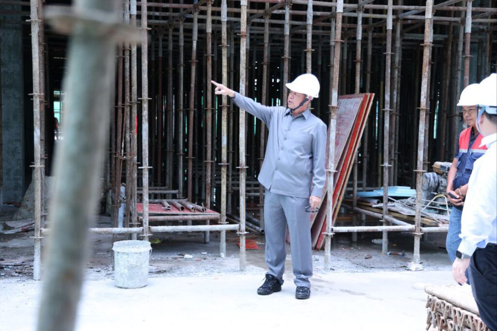 ខេត្តកណ្ដាល ៖ ព្រឹកថ្ងៃទី៣០ ខែឧសភា ឆ្នាំ២០២៥ ឯកឧត្ដម គួច ចំរើន អភិបាល នៃគណៈអភិបាលខេត្តកណ្ដាល បានអញ្ជើញចុះពិនិត្យវឌ្ឍនៈភាពនៃការដ្ឋានសាងសង់ អគាររដ្ឋបាលសាលាខេត្តកណ្ដាលថ្មី ស្ថិតនៅទីតាំងចាស់ ក្នុងភូមិដើមមៀន សង្កាត់ដើមមៀន ក្រុងតាខ្មៅ ខេត្តកណ្តាល។