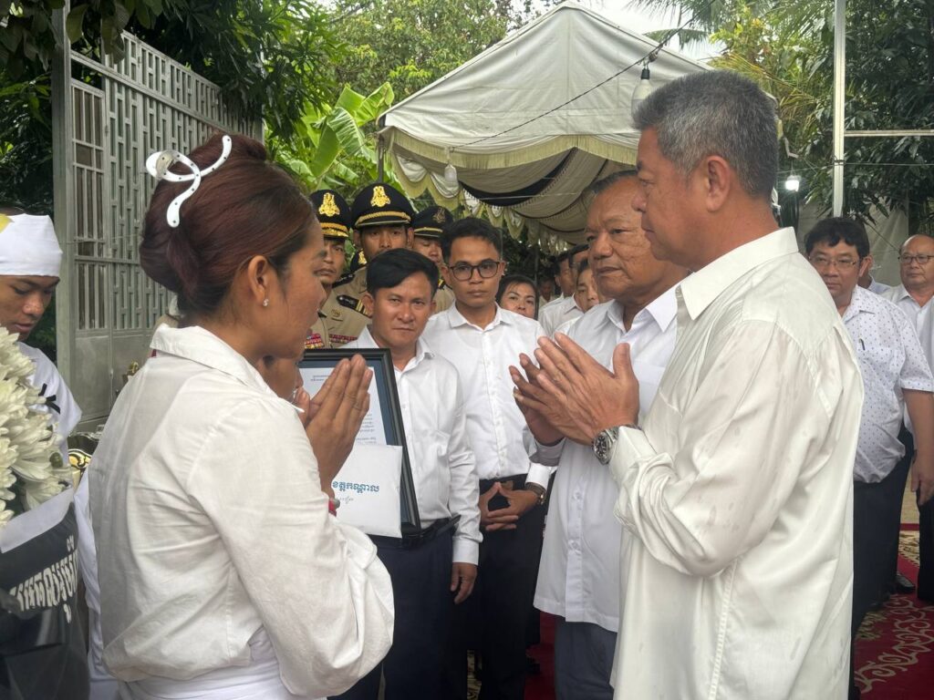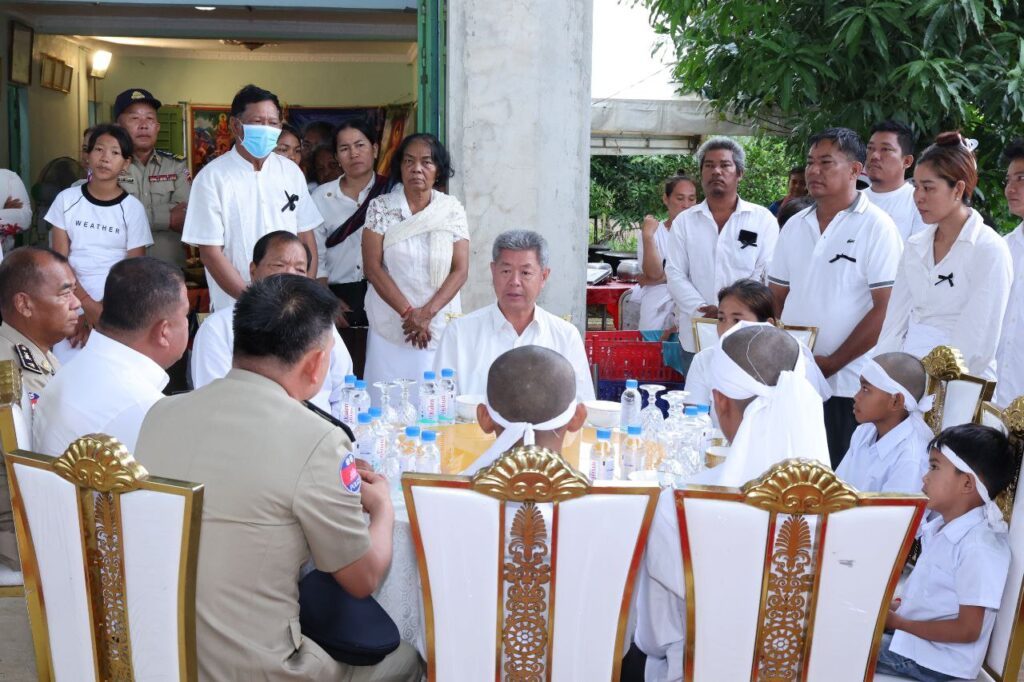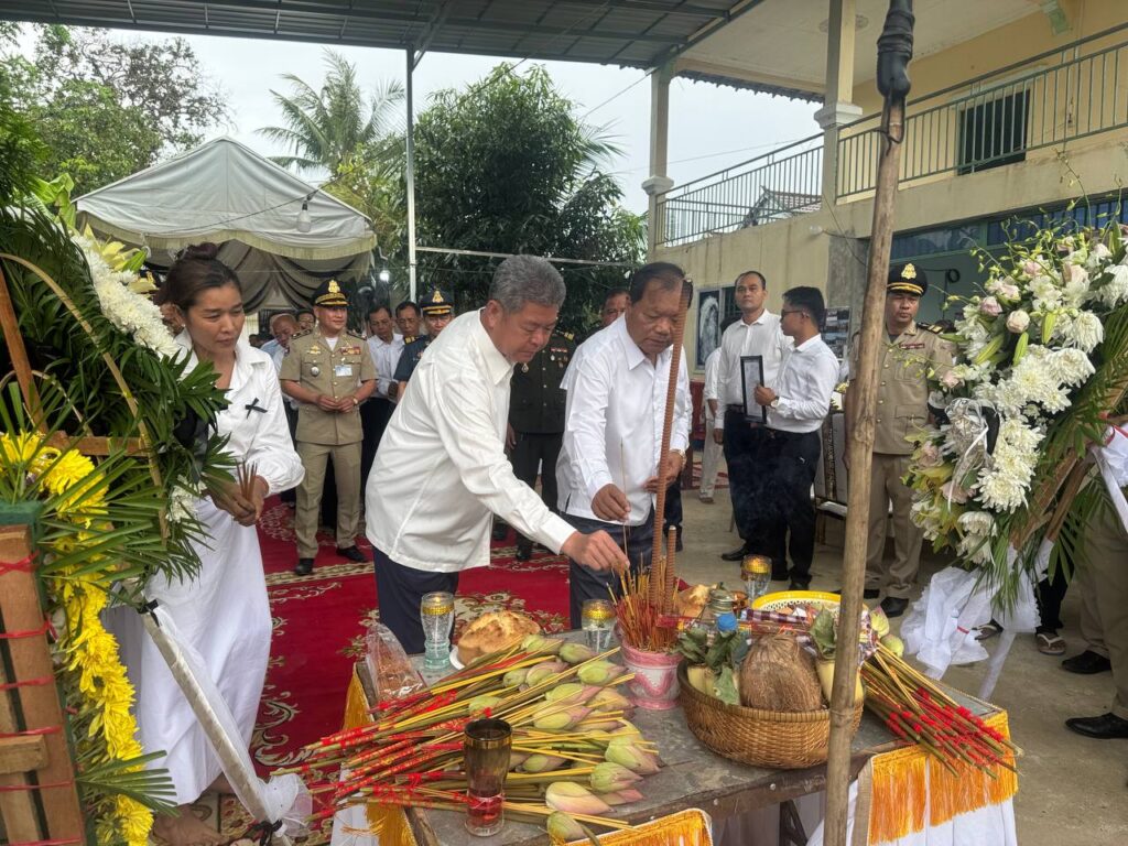 ខេត្តកណ្ដាល ៖ ល្ងាចថ្ងៃទី០២ ខែមិថុនា ឆ្នាំ២០២៥ ឯកឧត្តម នូ សាខន ប្រធានក្រុមប្រឹក្សាខេត្តកណ្តាល និងឯកឧត្តម គួច ចំរើន អភិបាល នៃគណៈអភិបាលខេត្តកណ្តាល បានដឹកនាំប្រតិភូរដ្ឋបាលខេត្តកណ្តាល អញ្ជើញចូលរួមគោរពវិញ្ញាណក្ខន្ធសព លោកអនុសេនីយ៍ឯក អ៊ុន ចាន់ថន នាយរងផ្នែ នៃការិយាល័យបង្ការពន្លត់អគ្គិភ័យនិងសង្គ្រោះ នៅគេហដ្ឋាននៃសព ស្ថិតនៅភូមិជើងព្រៃទី២ ឃុំអំពៅព្រៃ ស្រុកកណ្តាលស្ទឹង ខេត្តកណ្តាល។