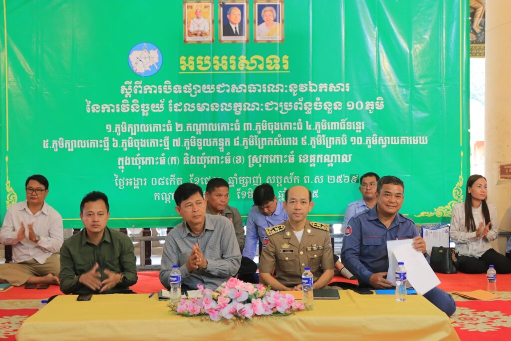 ++++++++++ខេត្តកណ្តាល៖មន្ទីររៀបចំដែនដី នគរូបនីយកម្ម សំណង់ និងសុរិយោដីខេត្តកណ្តាល អំពាវនាវឱ្យប្រជាពលរដ្ឋដែលជាម្ចាស់ក្បាលដី នៅគឺភូមិក្បាលកោះធំ ភូមិកណ្តាលកោះធំ ភូមិចុងកោះធំ ភូមិពោធិ៍ទន្លេ ភូមិក្បាលកោះថ្មី ភូមិចុងកោះថ្មី ភូមិទួលកន្ទួត ឃុំកោះធំ (ក) ភូមិព្រែកសំរោង ភូមិព្រែកបិ និងភូមិស្វាយតាមេឃឃុំកោះធំ (ខ) ស្រុកកោះធំ ខេត្តកណ្ដាល ស្មើនឹង៧, ៥៧១ក្បាលដី អញ្ជើញមកពិនិត្យឈ្មោះ និងផ្ទៀងផ្ទាត់ទិន្នន័យក្បាលដី អោយបានត្រឹមត្រូវ ក្នុងរយៈពេល១៥ថ្ងៃ ចាប់ពីថ្ងៃទី៣ ខែមិថុនា ដល់ថ្ងៃទី១៧ ខែមិថុនា ឆ្នាំ២០២៥។លោក លោក ទៀង កុស្យារៈ អនុប្រធានរៀបចំដែនដី នគរូបនីយកម្ម សំណង់ និងសុរិយោដីខេត្តកណ្តាល អំពាវនាវបែបក្នុងពិធីបិទផ្សាយជាសាធារណៈ នូវឯកសារ នៃការវិនិច្ឆ័យក្បាលដីមានលក្ខណៈជាប្រព័ន្ធ នៅឃុំកោះធំ (ក) និងឃុំកោះធំ(ខ) ស្រុកកោះធំ ខេត្តកណ្ដាល នាព្រឹកថ្ងៃទី៣ ខែមិថុនា ឆ្នាំ២០២៥ នៅក្នុងវត្តកោះធំ។លោកអនុប្រធានមន្ទីរបន្តថា៖ ការបិទផ្សាយនេះមានសារៈសំខាន់ណាស់ សម្រាប់ប្រជាពលរដ្ឋដែលមានដី នៅភូមិទាំង១០ ត្រូវមកពិនិត្យ និងផ្ទៀងផ្ទាត់ទិន្នន័យក្បាលដី អោយបានត្រឹមត្រូវ ហើយក្នុងករណីមាន ខុសឈ្មោះ ទំហំដី ឬព្រំដី ប្រជាពលរដ្ឋ និងអ្នកពាក់ព័ន្ធទាំងឡាយ អាចធ្វើការជំទាស់តវ៉ា លើទិន្នន័យដែលបានបិទផ្សាយ។ ហើយការជំទាស់តវ៉ាមានរយៈពេល១៥ថ្ងៃ ដោយគិតចាប់ពីថ្ងៃបិទផ្សាយនេះ ដោយក្នុងរយៈពេល ១៥ថ្ងៃ គណៈកម្មការរដ្ឋបាល និងមន្ត្រីសុរិយោដី នឹងនៅប្រចាំការរៀងរាល់ថ្ងៃ ទាំងថ្ងៃឈប់សម្រាក និងថ្ងៃបុណ្យផ្សេងៗ ដើម្បីរងចាំពន្យល់ទិន្នន័យទាំងឡាយ ទទួលពាក្យបណ្ដឹង ដោះស្រាយការតវ៉ា និងវិវាទផ្សេងៗ។ បន្ទាប់ពីបិទផ្សាយរយៈពេល១៥ថ្ងៃរួចមក យើងនឹងទទួបានទិន្នន័យត្រឹមត្រូវ សម្រាប់ចេញវិញ្ញាបនបត្រសម្គាល់ម្ចាស់អចលនវត្ថុ(ប្លង់រឹង) ជូនប្រជាពលរដ្ឋ ដែលជាការរួមចំណែកកាត់បន្ថយជំលោះដីធ្លី កាត់បន្ថយភាពក្រីក្ររបស់ប្រជាពលរដ្ឋផងដែរ។លោក ឆែ វណ្ណឌី អភិបាលស្រុកកោះធំ បានលើកឡើងថា ការបិទផ្សាយនូវការវិនិច្ឆ័យនៅពេលនេះ ឆ្លុះបញ្ចាំងឱ្យឃើញអំពីការយកចិត្តទុកដាក់ខ្ពស់ របស់រាជរដ្ឋាភិបាល សំដៅលើកកម្ពស់ជីវភាព សុខុមាលភាព និងកាត់បន្ថយភាពក្រីក្រ ព្រមទាំងរួមចាំណែកដល់ការពង្រឹងយុត្តិធម៌ និងស្ថេរភាពសង្គម។លោកបន្តថា៖ ក្នុងការអនុវត្តនីតិវិធី នៃការចុះបញ្ជីដីធ្លីមានលក្ខណៈជាប្រព័ន្ធ យើងបានប្រើប្រាស់នូវបច្ចេកទេសខ្ពស់ រួមមាន រូបថតពីលើអាកាស ការវាស់វែងដោយម៉ាស៊ីនស្វ័យប្រវត្តិ ព្រមទាំងការផ្ទុកទិន្នន័យ និងការគូសប្លង់សុរិយោដីដោយកុំព្យូទ័រ។សូមបញ្ជាក់ថា៖ ស្រុកកោះធំ បានបិទផ្សាយរួចមកដល់ពេលនេះបានចំនួន ០៤លើក ហើយការបិទផ្សាយនាពេលនេះមា