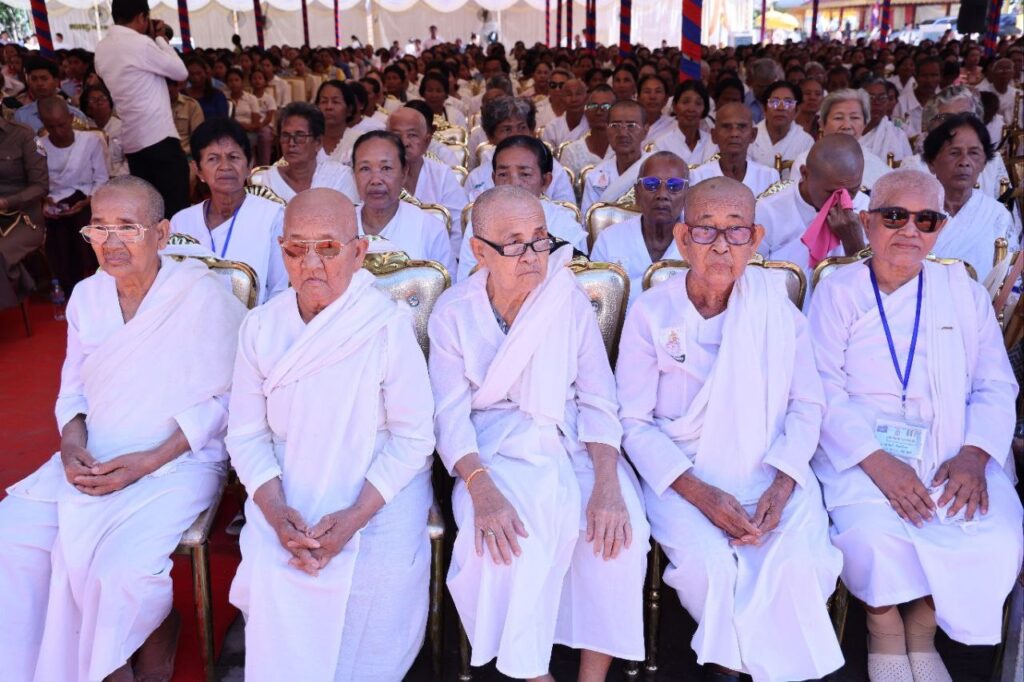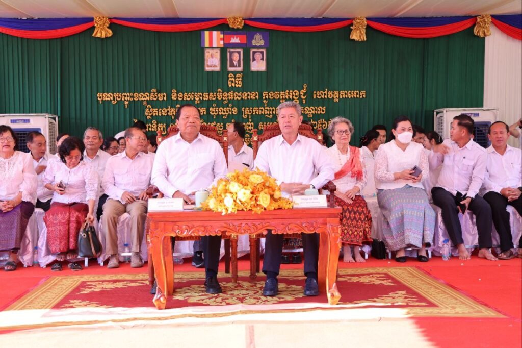 +++++++++++ខេត្តកណ្តាល៖ព្រះវិហារថ្មីដ៏វិចិត្រ និងស្កឹមស្កៃ សាងសង់តាមរចនាបថស្ថាបត្យកម្មខ្មែរបុរាណ លើខឿនពីរជាន់, កំពស់ពីក្រោមដល់កំពូលត្រីសូល៍ ៣១ម៉ែត្រ៩តឹក, មានសសរចំនួន៦០ដើម, សសរក្នុងចំនួន១២ដើម, សសរក្រៅចំនួន ២៨ដើមលំអដោយ ក្បូរក្បាច់រចនា និងលាបពណ៌មាសភ្លឺរលោង, តួព្រះវិហារមានបណ្តោយ ២០ម៉ែត្រ៣តឹក, ទទឹង១១ម៉ែត្រ៣តឹក,ដំបូលប្រក់ក្បឿងស្រកាលិញ តុបតែងលំអដោយជហ្វាដងក្តារ និងហោជាងបំពាក់នូវក្បាច់ផ្កាភ្ញីលាបពណ៌យ៉ាងល្អប្រណីត និងដងទង់១គូរកម្ពស់២១ម៉ែត្រ ក្នុងវត្តអង្គជុំ ហៅវត្តតាអោក ស្ថិតនៅភូមិតាអោក ឃុំឈ្វាំង ស្រុកពញាឮ ខេត្តកណ្តាល ត្រូវបានដាក់សម្ភោធអោយប្រើប្រាស់តាមវិស័យព្រះពុទ្ធសាសនា ត្រូវបានសាងសង់អស់រយៈ១ឆ្នាំ ៨ខែ និង ៨ថ្ងៃ ដោយប្រើប្រាស់ថវិកាសរុបចំនួន ៤៣៥, ៤៧៦$ (បួនសែនបីម៉ឺនប្រាំពាន់បួនរយចិតសិបប្រាំមួយដុល្លារ) និងបានបញ្ចប់ជាស្ថាពរនៅថ្ងៃទី៣ ខែកុម្ភៈ ឆ្នាំ២០២៤ និងដាក់សម្ភោធអោយប្រើប្រាស់ នាព្រឹកថ្ងៃទី៨ ខែមិថុនា ឆ្នាំ២០២៥ ក្រោមព្រះរាជវត្តមានដ៏ខ្ពង់ខ្ពស់របស់ សម្តេចព្រះពោធិវង្ស កិត្តិបណ្ឌិត ណយ ច្រឹក សម្តេចព្រះសង្ឃនាយករងទី១ គណៈមហានិកាយ នៃ ព្រះរាជាណាចក្រកម្ពុជា និងអញ្ជើញចូលរួមពីសំណាក់ឯកឧត្តម នូ សាខន ប្រធានក្រុមប្រឹក្សាខេត្តកណ្តាល និងឯកឧត្តម គួច ចំរើន អភិបាល នៃគណៈអភិបាលខេត្តកណ្តាល។ ឯកឧត្តម គួច ចំរើន អភិបាល នៃគណៈអភិបាលខេត្តកណ្តាល បានអបអរសាទរ កោតសរសើរ និងថ្លែងអំណរព្រះគុណ និងអរគុណ យ៉ាងជ្រាលជ្រៅ ថ្វាយ ប្រគេន និងជូនចំពោះ សម្តេចព្រះពោធិវ័ង្ស កិត្តិបណ្ឌិត ណយ ច្រឹក សម្តេចព្រះសង្ឃនាយករងទី១ ព្រះភិក្ខុជោតិវរោ ជួប នី ព្រះចៅអធិការវត្តអង្គជុំ ព្រះថេរានុត្ថេរៈគ្រប់ព្រះអង្គ គណៈកម្មការវត្ត សប្បុរសជន ពុទ្ធបរិស័ទជិតឆ្ងាយ ដែលបានខិតខំលះបង់យកអស់កម្លាំង កាយចិត្ត ប្រាជ្ញាស្មារតី និងកៀរគរធនធានថវិកា ក្នុងការជួសជុល និងកសាងស្ថាបនា វត្តអង្គជុំ រហូតសម្រេចបាននូវសមិទ្ធផល គួរជាទីមោទនៈខាងលើ ដែលជាការចូលរួមដ៏ឧត្តុង្គឧត្តម ក្នុងការអភិវឌ្ឍវិស័យពុទ្ធចក្រ ឱ្យកាន់តែមានការរីកចម្រើន។ ឯកឧត្តមបានបន្តថា៖ វត្តអារាមរបស់ព្រះពុទ្ធសាសនា មានតួនាទីយ៉ាងសំខាន់សម្រាប់សង្គមខែ្មរ។ ទីវត្តអារាម ជាកន្លែងសម្រាប់អប់រំចិត្ត គោរពបូជាតាមផ្លូវជំនឿសាសនា និងជាថ្នាលបណ្តុះបណ្តាលនូវចំណេះដឹង ជាថ្នាលបណ្តុះនិងថែរក្សានូវគម្ពីរក្បួនច្បាប់ អក្សរសាស្រ្ត ទំនៀមទម្លាប់ វប្បធម៌ ប្រពៃណី តម្លៃសីលធម៌ និងធនធានមនុស្សខាងបញ្ញាស្មារតី តាមផ្លូវពុទ្ធចក្រ និងអាណាចក្រ។ ក្នុងឱកាសនោះ ឯកឧត្តមអភិបាលខេត្តបានអំពាវនាវដល់ប្រជាពលរដ្ឋ ប្រជាពុទ្ធបរិស័ទទំាងអស់ នាំគ្នាថែរក្សាសុខសន្តិភាព ស្ថិរភាព