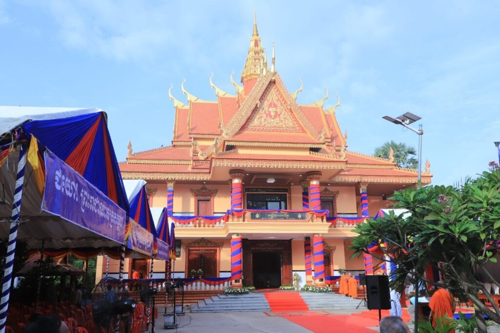 ++++++++++ខេត្តកណ្តាល៖ មង្គលហោត្រៃ មួយខ្នង ក្នុងវត្តជ័យមង្គល ស្ថិតក្នុងភូមិព្រែកតាកែវ ឃុំសំរោងធំ ស្រុកកៀនស្វាយ ខេត្តកណ្តាល មានកម្ពស់ ២ជាន់បណ្តោយ ២២ម៉ែត្រ xទទឹង១១ម៉ែត្រ យ៉មុខបណ្តោយ៥ម៉ែត្រ Xទទឹង៣ម៉ែត្រ ដែលចំណាយថវិកាសាងសងចំនួន ១៩០ ១៨០ដុល្លា(មួយរយកៅសិបពាន់មួយរយប៉ែតសិបដុល្លារអាមេរិក) ត្រូវបានសម្ពោធឆ្លងដាក់ឱ្យប្រើប្រាស់នៅនៅព្រឹកថ្ងៃទី១៤ ខែមិថុនា ឆ្នាំ២០២៥នេះ ដែលបានទទួលការនិមន្តរបស់ព្រះវិជ្ជានុរក្ខញាណ ខឹម សុផន ព្រះអនុគណស្រុកកៀនស្វាយ និងជាព្រះចៅអធិការវត្តស្លាកែត មហាឧបាសិកាធម្មរតនវិវឌ្ឍនា សុខ ឈាង ឧត្តមទីប្រឹក្សាគណៈសង្ឃ នាយក គណៈមហានិកាយ នៃព្រះរាជាណាចក្រកម្ពុជា មាតាបង្កើតឯកឧត្តម គួច ចំរើន អភិបាលខេត្តកណ្តាល និងឯកឧត្តម តាំង ម៉េងលាន អភិបាលរងខេត្តកណ្តាល។ មានប្រសាសន៍ក្នុងឱកាសនោះដែរ ឯកឧត្តម តាំង ម៉េងលាន អភិបាលរងខេត្តកណ្តាល បានលើកឡើងថា៖ ព្រះពុទ្ធសាសនាកំពុងដើរតួនាទីយ៉ាងសំខាន់ នៅក្នុងការជួយអភិវឌ្ឍធនធានមនុស្ស នៅកម្ពុជា តាមរយៈនូវការអប់រំផ្ទាល់តាមសហគមន៍ និងទេសនាអប់រំធម៌វិន័យ សីលធម៌ សុជីវធម៌តាមប្រព័ន្ធផ្សព្វផ្សាយនានា ដូចជា វិទ្យុ ទូរទស្សន៍ ប្រព័ន្ធទំនាក់ទំនងសង្គមផ្សេងៗទៀតជាដើម។ ជាងនេះទៅទៀត ការអប់រំតាមបែបទស្សនវិជ្ជា របស់ព្រះពុទ្ធសាសនា ដែលបានធ្វើឡើងតាមរយៈតួនាទីរបស់ព្រះសង្ឃ ពិតជាបានរួមចំណែកយ៉ាងសំខាន់ ក្នុងការលើកកម្ពស់ការយល់ដឹងអំពីតម្លៃសីលធម៌ និងឥរិយាបថក្នុងសង្គមដែល ពុទ្ធសាសនិកទាំងអស់ ត្រូវប្រកាន់ខ្ជាប់នូវស្មារតី ដឹងខុសដឹងត្រូវ ដឹងល្អដឹងអាក្រក់ ដឹងថា តើអ្វីគួរធ្វើ និងអ្វីមិនគួរធ្វើ។ ឯកឧត្តមបានបន្តថា៖ ទាំងនេះបញ្ជាក់យ៉ាងច្បាស់ពីការបើកទូលាយលើសេរីភាពជំនឿសាសនា ក្រោមការដឹកនាំរបស់រាជរដ្ឋាភិបាលកម្ពុជា ដែលមានសម្តេចតេជោ ហ៊ុន សែន អតីតនាយករដ្ឋមន្ត្រី និងបន្តមករាជរដ្ឋាភិបាលនីតិកាលទី៧ នៃរដ្ឋសភា ដឹកនាំដោយសម្តេចមហាបវរធិបធី ហ៊ុន ម៉ាណែត នាយករដ្ឋមន្ត្រីនៃកម្ពុជា ដែលបានចាត់ទុកបញ្ហាសុខដុមនីយកម្មរវាងជាតិសាសន៍ និងសាសនាជាបញ្ហាដ៏មានសារៈសំខាន់ ដើម្បីធានាដល់សុខសន្តិភាពការបង្រួបបង្រួមជាតិ ក៏ដូចជាការអភិវឌ្ឍសង្គមជាតិ។ ឯកឧត្តមអភិបាលរងខេត្តបានបន្ថែមថា៖ ទីអារាមក៏ត្រូវបានចាត់ទុកថាជាផ្នែកមួយដ៏សំខាន់ក្នុងការបន្តអនុវត្តគោលនយោបាយសម្រាប់មនុស្សចាស់ កុមារ និងបានក្លាយជាទីជម្រកសុវត្ថិភាពសម្រាប់លោកយាយ លោកតាជាកន្លែងសម្រាប់ សុំសីលធ្វើទានកុមារ និងយុវជនមួយចំនួនដែលមិនមានលទ្ធភាពក៏បានប្រើប្រាស់ទីអារាមនេះ ដោយមួយចំនួនបានបួសដើម្បីបន្តការសិក្សា និងមួយចំនួនទៀតក៏បានស្នាក់នៅដើម្បីបន្តការសិក្សា។ ជាមួយគ្នានោះ ឯកឧត្តម តាំង ម៉េង