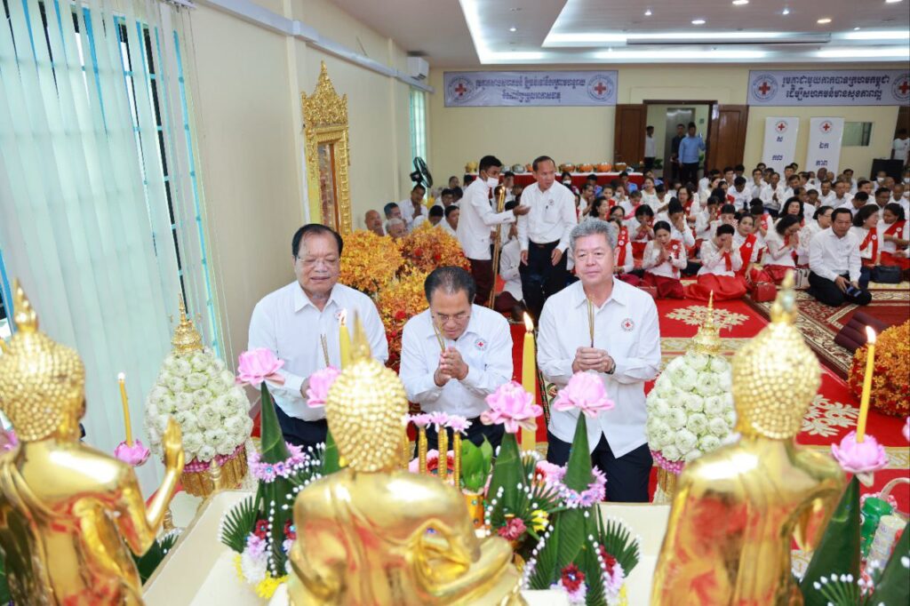 +++++++++ ខេត្តកណ្ដាល៖ ព្រឹកថ្ងៃទី១៧ ខែមិថុនា ឆ្នាំ២០២៥ ឯកឧត្តមបណ្ឌិត ម៉ៅ ភិរុណ ប្រធានកិត្តិយសសាខាកាកបាទក្រហមកម្ពុជាខេត្តកណ្តាល ឯកឧត្តម នូ សាខន ប្រធានក្រុមប្រឹក្សាខេត្តកណ្តាល និងឯកឧត្តម គួច ចំរើន ប្រធានគណៈកម្មាធិការសាខាកាកបាទក្រហមកម្ពុជាខេត្តកណ្តាល បានអញ្ជើញប្រារព្ធពិធីសូត្រមន្តចម្រើនព្រះបរិត្ត និងរាប់បាត្រ ប្រគេនទេយ្យវត្ថុដើម្បីថ្វាយព្រះរាជកុសល សម្ដេចព្រះមហាហាក្សត្រី នរោត្តម មុនិនាថ សីហនុ ព្រះវររាជមាតាជាតិខ្មែរ ក្នុងសេរីភាព សេចក្តីថ្លៃថ្នូរ និងសុភមង្គល ព្រះប្រធានកិត្តិយកាកបាទក្រហមកម្ពុជា ក្នុងព្រះជន្មាយុ គម្រប់៨៩ យាងចូល ៩០ ព្រះវស្សា ដោយមានការចូលរួមពី លោកជំទាវ-ឯកឧត្តម អភិបាលរងខេត្ត មន្ទីរអង្គភាពជុំវិញខេត្ត អាជ្ញាធរក្រុង-ស្រុក លោក-លោកស្រីមន្ត្រីរាជការ។ក្នុងឱកាសពិធីដ៏សោមនស្សរីករាយជាអនេកប្បការ និងសូមព្រះបរមរាជានុញ្ញាតលំឱនកាយថ្វាយព្រះរាជសព្ទសាធុការពរ បវរសួស្តី សិរីវឌ្ឍនាជយាមហាប្រសើរថ្វាយ សម្ដេចព្រះមហាក្សត្រី ព្រះវររាជមាតាជាតិខ្មែរ សូមព្រះអង្គប្រកបដោយព្រះរាជសុខភាពល្អបរិបូរណ៍ ព្រះកាយពលមាំមួនខ្លាំងក្លា ព្រះបញ្ញាញាណភ្លឺថ្លាវាងវៃ ព្រះជន្មទីឃាយុយឺនយូរជាងរយព្រះវស្សា ដើម្បីព្រះអង្គគង់ប្រថាប់ជាមហាម្លប់ដ៏ត្រជាក់ត្រជំសម្រាប់ប្រជាពលរដ្ឋជាកូន ចៅ ចៅទួតរបស់ព្រះអង្គជ្រកកោនក្នុងក្តីសុខក្សេមក្សាន្តជានិច្ចនិរន្តរ៍។ក្នុងឱកាសដ៏មហានក្ខត្តឫក្សឧត្តុង្គឧត្តម នៃព្រះរាជពិធីបុណ្យចម្រើនព្រះជន្មវស្សាគម្រប់ ៨៩ យាងចូល ៩០ព្រះវស្សា សម្តេចព្រះមហាក្សត្រី នរោត្តម មុនិនាថ សីហនុ ព្រះវររាជមាតាជាតិខ្មែរ ក្នុងសេរីភាព សេចក្តីថ្លៃថ្នូរ និងសុភមង្គល ព្រះប្រធានកិត្តិយសកាកបាទក្រហមកម្ពុជា ជាទីគោរពសក្ការៈដ៏ខ្ពង់ខ្ពស់បំផុត ឯកឧត្តមបណ្ឌិត ម៉ៅ ភិរុណ ប្រធានកិត្តិយសសាខាកក្រកខេត្តកណ្តាល ឯកឧត្តម គួច ចំរើន ប្រធានគណៈកម្មាធិការសាខាកក្រកខេត្តកណ្តាល និងឯកឧត្តម នូ សាខន ប្រធានក្រុមប្រឹក្សាខេត្តកណ្តាល បានរៀបចំព្រះរាជពិធីចម្រើនព្រះជន្មវស្សា ដោយមានការនិមន្តពី សម្តេចព្រះសង្ឃ-ព្រះតេជគុណ សរុប០៩អង្គ ចម្រើនព្រះបរិត្ត និងយាង-និមន្តគោចរបិណ្ឌបាត្រ ជាកិច្ចចម្រើនព្រះជន្មវស្សា ស្របតាមព្រះរាជប្បវេណី និងតាមគន្លងព្រះពុទ្ធសាសនា ដែលពិធីនេះប្រព្រឹត្តទៅសាខាកាកបាទក្រហមកម្ពុជាខេត្តកណ្តាល។ក្នុងវរោកាសដ៏មហាប្រសើរថ្លៃថ្លានេះ ថ្នាក់ដឹកនាំ និងសហការី នៃសាខាកាកបាទក្រហមកម្ពុជាខេត្តកណ្តាល សូមអភិវន្ទថ្វាយនូវព្រះរាជកតញ្ញូ កតវេទិតាដ៏ខ្ពង់ខ្ពស់បំផុត ថ្វាយ សម្ដេចព្រះមហាក្សត្រី ព្រះវររាជមាតាជាតិខ្មែរ ព្រះអង្គ តែងតែបានយ៉ាងដង្ហែព្រះរាជបូជនីយកិច្ច