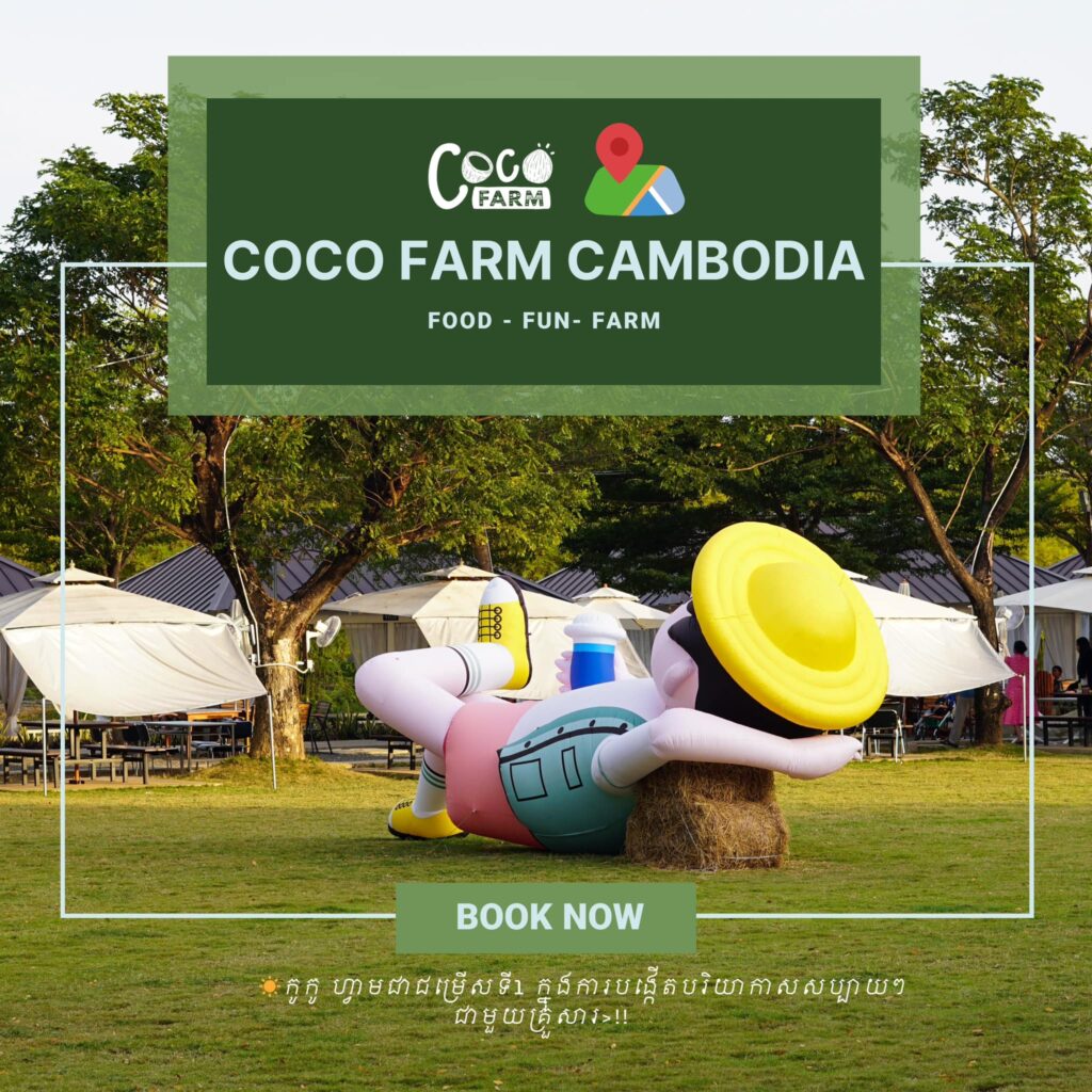 ចង់រកកន្លែងសម្រាក និងកំសាន្តលេងដែលនៅជិតក្រុងអាចមកលេងនៅកូកូ ហ្វាមបាន ទីតាំងស្ថិតនៅ ស្រុកស្អាង ខេត្ដកណ្ដាល។ Link for Google Map:https://maps.app.goo.gl/CYwiwrXy1aNMnQ2U6?g_st=ifm