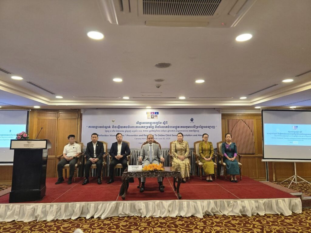 ខេត្តកណ្តាល៖ព្រឹកថ្ងៃទី៣០ ខែមិថុនា ឆ្នាំ២០២៥ លោកជំទាវ ស្រ៊ុន ស្រីនាង អភិបាលរងខេត្តកណ្តាល និងជាប្រធានលេខាធិការដ្ឋានគណៈកម្មាធិការប្រយុទ្ធប្រឆាំងអំពើជួញដូរ មនុស្ស ខេត្តកណ្តាល បានអញ្ជើញចូលរួមក្នុងសិក្ខាសាលាឆ្លុះបញ្ចាំងស្តីពី“កិច្ចបង្ការទប់ស្កាត់ និងឆ្លើយតបចំពោះការកេងប្រវ័ញ្ច និងរំលោភបំពានផ្លូវភេទកុមារលើប្រព័ន្ធអនឡាញ” នៅសណ្ឋាគារសាន់វ៉េ រាជធានីភ្នំពេញ ក្រោមអធិបតីភាពលោកជំទាវ ជូ ប៊ុនអេង រដ្ឋលេខា ធិការក្រសួងមហាផ្ទៃ និងជាអនុប្រធានអចិន្ត្រៃយ៍ នៃគណៈកម្មាធិការជាតិប្រយុទ្ធ ប្រឆាំងអំពើជួញដូរមនុស្ស (គជបជ)។កម្មវិធីនេះមានគោលបំណងដើម្បីពិភាក្សា ផ្លាស់ប្តូរ ចែករំលែក និងឆ្លុះបញ្ចាំងការអនុវត្តល្អៗ ការប្រឈម និងដំណោះស្រាយ នានា ដើម្បីធ្វើឱ្យកាន់តែល្អប្រសើរឡើង និងមានប្រសិទ្ធិភាព ក្នុងការបង្ការទប់ស្កាត់ និងឆ្លើយតបចំពោះការកេងប្រវ័ញ្ច និង រំលោភបំពានផ្លូវភេទកុមារលើប្រព័ន្ធអនឡាញ៕