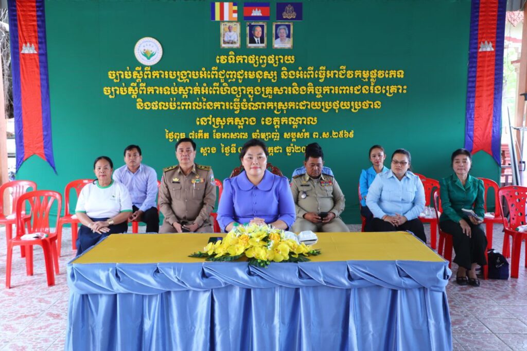 -----------------------លោកជំទាវ ស្រ៊ុន ស្រីនាង អភិបាលរងខេត្ដកណ្តាល និងជាអនុប្រធានអចិន្ត្រៃយ៍គណៈកម្មការប្រយុទ្ធប្រឆាំងអំពើជួញដូរមនុស្សខេត្តកណ្តាល បានឱ្យធ្វើការផ្សព្វផ្សាយបែបនេះ នៅក្នុងវេទិកាផ្សព្វផ្សាយច្បាប់ស្តីពីការបង្ក្រាបអំពើជួញដូរមនុស្ស និងអំពើធ្វើអាជីវកម្មផ្លូវភេទ ច្បាប់ស្តីពីការទប់ស្កាត់អំពើហិង្សាក្នុងគ្រួសារ និងកិច្ចការពារជនរងគ្រោះ និងផលប៉ះពាល់នៃការធ្វើចំណាកស្រុកដោយប្រថុយប្រថាន នៅស្រុកស្អាង នារសៀលថ្ងៃទី០២ ខែកក្កដា ឆ្នាំ២០២៥ ដោយមានការអញ្ជើញចូលរួមពីនាយប៉ុស្តិ៍រដ្ឋបាលឃុំ មេឃុំ មេភូមិ សិស្សានុសិស្ស សមាជិកសមាគមនារីដើម្បីអភិវឌ្ឍន៍ ប្រជាពលរដ្ឋ និងម្ចាស់អាជីកម្មផ្ទះសំណាក់ ខារ៉ាអូខេ ម៉ាស្សា កោលជប់ ជាច្រើននាក់។ លោកជំទាវអភិបាលរងខេត្ត បន្តថា៖ ការផ្សព្វផ្សាយបានទូលំទូលាយអំពីរូបភាព សកម្មភាពដែលចាត់ទុកជាអំពើជួញដូរមនុស្ស អំពើកេងប្រវ័ញ្ចផ្លូវភេទតាមប្រព័ន្ធអនឡាញ ការប្រើអំពើហិង្សា និងការធ្វើចំណាកស្រុកដោយប្រថុយប្រថាន គឺចង់អោយបងប្អូនប្រជាពលរដ្ឋមានការយល់ដឹងកាន់តែច្បាស់ អំពីការជួញដូរមនុស្ស ឬការធ្វើអាជីវកម្មផ្លូវភេទលើស្ត្រី និងកុមារ និងចង់អោយបងប្អូនបានយល់ពីរបៀបនៃទប់ស្កាត់ ការការពារខ្លួន និងស្វែងរកកិច្ចអន្តរាគមន៍ សេវាជួយសង្គ្រោះ ជំនួយផ្លូវច្បាប់ ពីសំណាក់អាជ្ញាធរមានសមត្ថកិច្ចនានា។ ក្នុងឱកាសនោះដែរ លោកជំទាវអភិបាលរងខេត្ត បានជំរុញឱ្យអាជ្ញាធរគ្រប់ស្រុក ត្រូវយកចិត្តទុក្ខដាក់ខ្ពស់ ចំពោះពលករខ្មែរដែលត្រឡប់មកពីប្រទេសថៃ នឹងត្រូវត្រៀមទទួលស្វាគមន៍ និងចុះសួរសុខទុក្ខពួកគាត់ព្រមទាំងលើកទឹកចិត្តពួកគាត់ឱ្យស្វែងរកការងារធ្វើនៅក្នុងស្រុក ដែលបច្ចុប្បន្ននេះខេត្តកណ្តាលកំពុងមានតម្រូវការកំលាំងការងារប្រមាណ ១៥,០០០ កន្លែង សំរាប់ពលរដ្ឋទូទៅ ក៏ដូចជាបងប្អូនពលករខ្មែរយើងទើបត្រលប់មកពីប្រទេសថៃវិញ ។ ទន្ទឹមនឹងនោះ លោកជំទាវអភិបាលរងខេត្ត ក៏បានអំពាវនាវដល់បងប្អូនប្រជាពលរដ្ឋ អាជ្ញាធរមូលដ្ឋានគ្រប់លំដាប់ថ្នាក់ ជាពិសេសប្អូនៗក្មួយៗដែលប្រើប្រាស់បណ្ដាញសង្គមទូទាំងអស់ សូមរក្សាភាពស្ងៀមស្ងាត់ និងចូលរួមគាំទ្ររាជរដ្ឋាភិបាល ក្នុងការលើកបញ្ហាប្រាសាទតាមាន់ធំ ប្រាសាទតាមាន់តូច ប្រាសាទតាក្របី និងតំបន់មុំ៣ ទៅតុលាការយុត្តិធម៌អន្តរជាតិ(ICJ) និងសូមជួយគាំទ្រដល់កងទ័ពដែលឈរជើងនៅព្រំដែន ក្នុងការការពារបូរណភាពទឹកដី។ ពិសេសសូមមានការប្រុងប្រយ័ត្នការផ្សព្វផ្សាយព័ត៌មានមិនពិតលើបណ្តាញសង្គម នាំឱ្យមានការញុះញង់ អុចអាល ដែលនាំឱ្យមានការរើសអើងពូជសាសន៍ និងអាចបង្កឱ្យមាន អស្ថិរភាព និងអសន្តិសុខសង្គមផងដែរ។