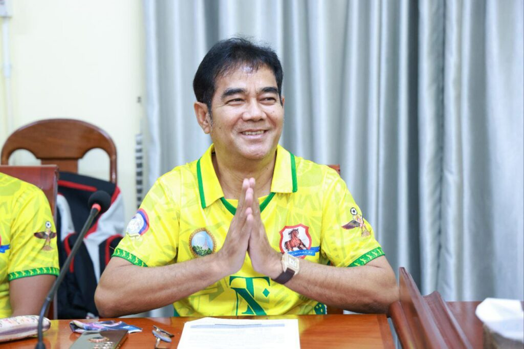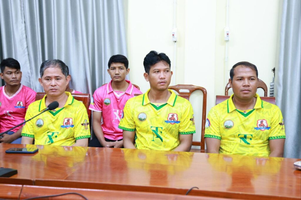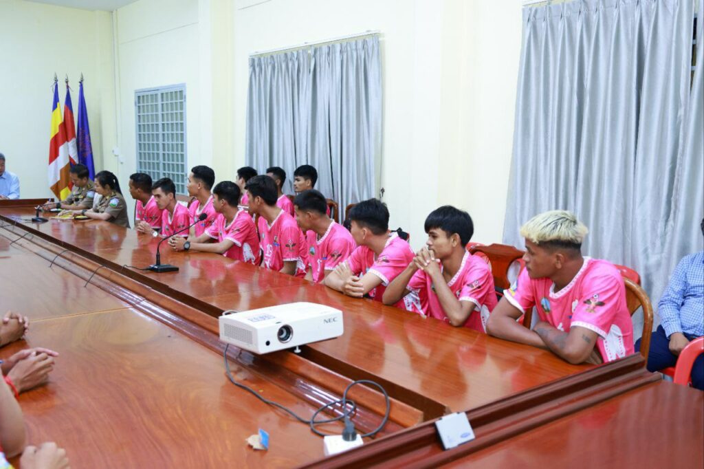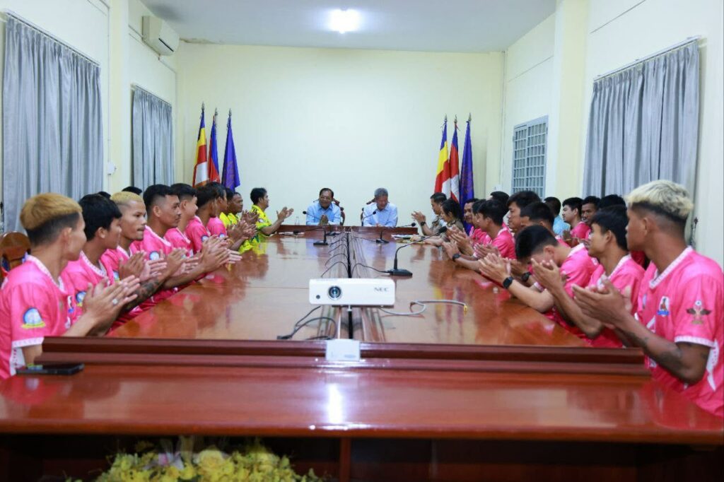 ខេត្តកណ្តាល៖ ឯកឧត្តម នូ សាខន ប្រធានក្រុមប្រឹក្សាខេត្ត និងឯកឧត្តម គួច ចំរើន អភិបាល នៃគណៈអភិបាលខេត្តកណ្ដាល នៅរសៀលថ្ងៃទី៣ ខែកក្កដា ឆ្នាំ ២០២៥នេះ បានជួបសំណេះសំណាលជាមួយក្រុមកីឡាបាល់ទាត់ ស.ស.យ.ក ខេត្តកណ្ដាល ប្រមាណ ២២ រូប ត្រៀមចូលរួមក្នុងការប្រកួតដណ្ដើមពានរង្វាន់ SOCCER LEAGUE លើកទី៨ ឆ្នាំ២០២៥ របស់សហភាពសហព័ន្ធយុវជនកម្ពុជា។ឯកឧត្តម គួច ចំរើន បានថ្លែងនូវការគាំទ្រ និងលើកទឹកចិត្ត ដល់ក្រុមកីឡាបាល់ទាត់ ស.ស.យ.ក ខេត្តកណ្ដាល ត្រូវខិតខំប្រឹងប្រែងក្នុងការហ្វឹកហាត់ឱ្យបានខ្លាំងក្លាអស់ពីសមត្ថភាព មានសាមគ្គីភាពរឹងមាំក្នុងក្រុម រក្សាសុខភាពឱ្យបានល្អ ប្រកាន់ខ្ជាប់នូវវិន័យ និងបទបញ្ជាក្នុងការប្រកួត ត្រូវធ្វើយ៉ាងណាពង្រឹងសមត្ថភាពខ្លួនឱ្យបានខ្ពស់ សម្រាប់ត្រៀមខ្លួនចូលរួមក្នុងការប្រកួត ឱ្យទទួលបានចំណាត់ល្អជូនខេត្ត ។ ជាមួយគ្នានេះដែរ ឯកឧត្តមអភិបាលខេត្ត ក៏បានឧបត្ថម ដល់ក្រុមកីឡាបាល់ទាត់ ស.ស.យ.ក ខេត្តកណ្ដាល ក្នុងម្នាក់ ២០ម៉ឺនរៀលផងដែរ។