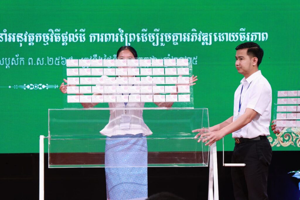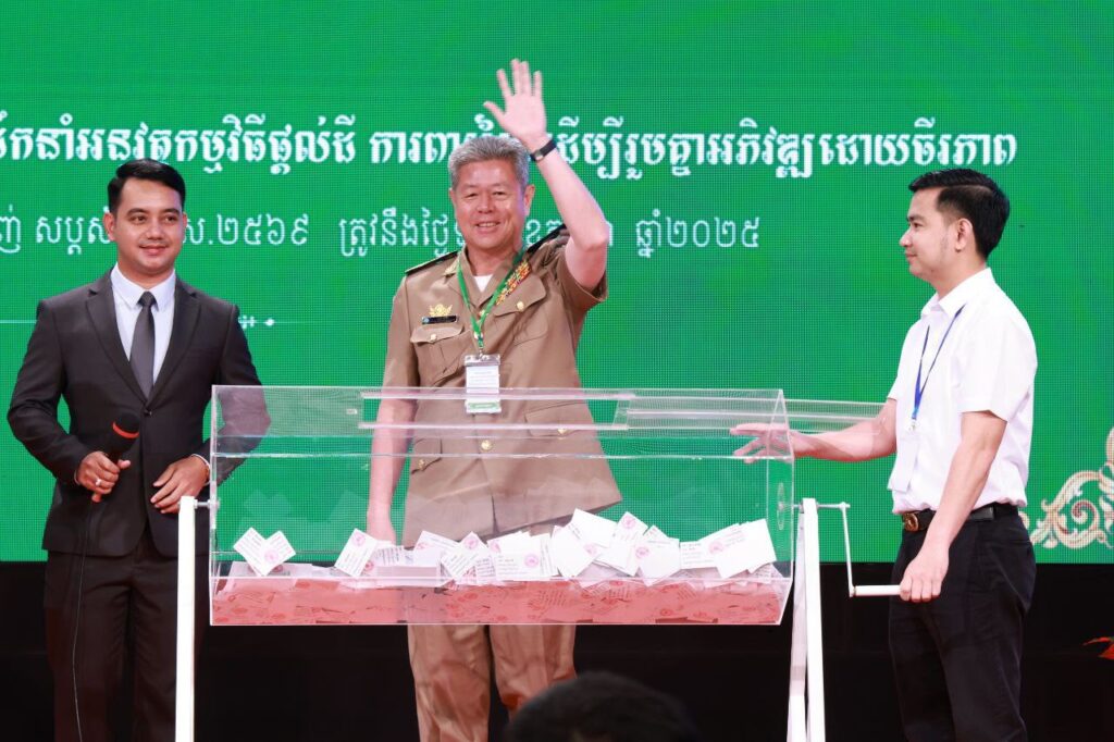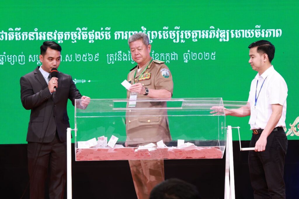 រសៀលថ្ងៃទី០៤ ខែកក្កដា ឆ្នាំ២០២៥ ឯកឧត្ដម គួច ចំរើន អភិបាល នៃគណៈអភិបាលខេត្តកណ្ដាល អញ្ជើញចូលរួមក្នុងពិធីផ្សាយបន្តផ្ទាល់ស្ដីពី ការចាប់ឆ្នោតអ្នកបានដាក់ពាក្យស្នើសុំដីជុំទី១ នៃកម្មវិធីផ្តល់ដី ការពារព្រៃដើម្បីរួមគ្នាអភិវឌ្ឍដោយចីរភាព នៅអគ្គនាយកដ្ឋានទូរទស្សន៍ជាតិកម្ពុជា។ ការចាប់ឆ្នោតអ្នកបានដាក់ពាក្យស្នើសុំដីជុំទី១ នៃកម្មវិធីផ្តល់ដី ការពារព្រៃដើម្បីរួមគ្នាអភិវឌ្ឍដោយចីរភាព ខេត្តកណ្តាលមានអ្នកដាក់ពាក្យចំនួន ៨៨១គ្រួសារ ចាប់ឆ្នោតយកចំនួន ១៧៩គ្រួសារ ក្នុងនោះសម្រាប់គម្រោងទី១យកចំនួន ៣៦គ្រួសារ ដោយត្រូវបានក្រុមការងារចុះត្រួតពិនិត្យលក្ខណៈសម្បត្តិ ដើម្បីអាចមានសិទ្ធិទទួលបានដីសម្រាប់គម្រោងទី១ នៅភូមិសាស្ត្រអូរសែវ ឃុំស្ដៅ និងឃុំសាមឃួយ ស្រុកសេសាន ខេត្តស្ទឹងត្រែង។