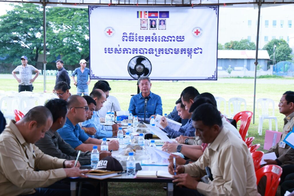 ខេត្តកណ្តាល៖រសៀលថ្ងៃទី០៦ ខែកក្កដា ឆ្នាំ២០២៥ ឯកឧត្តម គួច ចំរើន អភិបាល នៃគណ:អភិបាលខេត្តកណ្ដាល និងជាប្រធានគណ:បញ្ជាការឯកភាពរដ្ឋបាលខេត្តកណ្ដាល បានដឹកនាំកិច្ចប្រជុំដើម្បីពិភាក្សាលើការងាររៀបចំសន្តិសុខសណ្ដាប់ធ្នាប់ ការការពារសន្តិសុខសុវត្ថិភាពជូនដល់ សម្ដេចកិត្តិព្រឹទ្ធបណ្ឌិត ប៊ុន រ៉ានី ហ៊ុន សែន ប្រធានកាកបាទក្រហមកម្ពុជា និងគណ:ប្រតិភូអមដំណើរ ដែលនឹងអញ្ជើញជាអធិបតីភាពដ៏ខ្ពង់ខ្ពស់ក្នុងពិធីសំណេះសំណាលសួរសុខទុក្ខ និងចែកអំណោយមនុស្សធម៌កាកបាទក្រហមកម្ពុជា ជូនដល់ប្រជាពលរដ្ឋងាយរងគ្រោះ ក្នុងស្រុកកោះធំ ស្រុកស្អាង និងក្រុងសំពៅពូន ក្រោមអធិបតីភាពដ៏ខ្ពង់ខ្ពស់សម្ដេចកិត្តិព្រឹទ្ធបណ្ឌិត ប៊ុន រ៉ានី ហ៊ុន សែន ប្រធានកាកបាទក្រហមកម្ពុជា នៅថ្ងៃទី០៧ ខែកក្កដា ឆ្នាំ២០២៥ នៅក្នុងបរិវេណកីឡដ្ឋានស្រុកកោះធំ ស្ថិតក្នុងភូមិព្រែកថ្មី ឃុំព្រែកថ្មី ស្រុកកោះធំ ខេត្តកណ្ដាល។