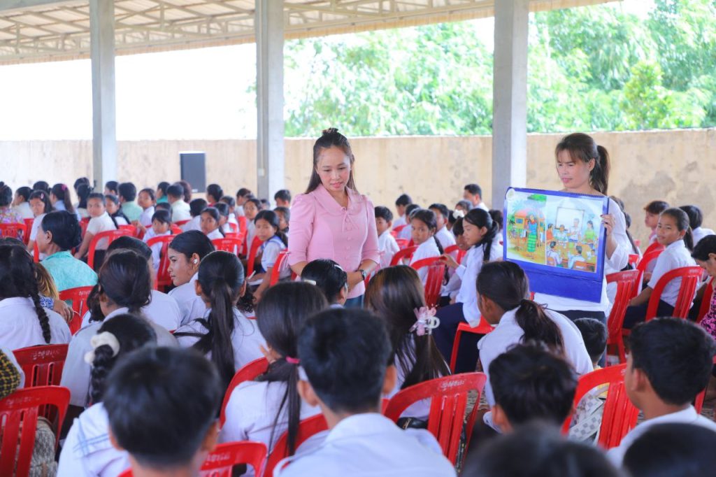 ----------------------------------------------ខេត្តកណ្តាល៖ ព្រឹកថ្ងៃទី២២ ខែកក្កដា ឆ្នាំ២០២៥ មន្ទីរកិច្ចការនារីខេត្តកណ្ដាល សហការជាមួយរដ្ឋបាលស្រុកមុខកំពូល បានរៀបចំវេទិកាផ្សព្វផ្សាយស្តីពី “ការលើកកម្ពស់សីលធម៌សង្គម តម្លៃស្ត្រី និងគ្រួសារខ្មែរ” ក្រោមអធិបតីភាព លោកជំទាវ ស៊្រុន ស្រីនាង អភិបាលរងខេត្តកណ្តាល ដែលវេទិកានេះប្រារព្ធធ្វើនៅបរិវេណវត្តអន្លង់ស្លែង ស្ថិតនៅឃុំសំបួរមាស ស្រុកមុខកំពូល ខេត្តកណ្តាល។ មានប្រសាសន៍ក្នុងវេទិកា លោកជំទាវ ស៊្រុន ស្រីនាង អភិបាលរងខេត្តកណ្តាល បានមានប្រសាសន៍ថា៖ ការលើកកម្ពស់សីលធម៌សង្គម តម្លៃស្ត្រី និងគ្រួសារខ្មែរ គឺដើម្បីពង្រឹង ថែរក្សា ការពារវប្បធម៌ ទំនៀមទំលាប់ប្រពៃណីជាតិ ក្នុងការលើកកម្ពស់សីលធម៌សង្គម តម្លៃស្ត្រី និងគ្រួសារខ្មែរ ប្រកបដោយសុភមង្គល សំដៅបំផុសស្មារតីឱ្យប្រជាពលរដ្ឋ សិស្សានុសិស្សចេះអប់រំខ្លួនឯង យល់ដឹងកាន់តែច្បាស់ពីតម្លៃពិត នៃទំនៀមទំលាប់ វប្បធម៌ ប្រពៃណី សីលធម៌ សុជីវធម៌ ដ៏ល្អផូរផង់របស់ខ្មែរយើង ហើយក៏មិនចង់ឃើញប្អូនៗយុវវ័យ សិស្សានុសិស្ស ប្រជាពលរដ្ឋខ្មែរយើងមួយចំនួន មានការភ្លើតភ្លើន ហួសហេតុនាំឱ្យប្រាសចាកពីវប្បធម៌ ប្រពៃណី ទំនៀមទំលាប់ និងសីលធម៌សង្គមឡើយ។ លោកជំទាវ អភិបាលរងខេត្ត បន្តថា៖ ការលើកកម្ពស់សីលធម៌សង្គមតម្លៃស្ត្រី និងគ្រួសារខ្មែរ ជាវេទិកាដ៏សំខាន់មួយដែលរាជរដ្ឋាភិបាល កំពុងតែយកចិត្តទុកដាក់ ដល់ប្រជាពលរដ្ឋ និងប្អូនៗសិស្សានុសិស្ស ដើម្បីប្រកាន់ភ្ជាប់ពីតម្លៃ សីលធម៌ សុជីវធម៌ វប្បធម៌ អរិយធម៌ ដ៏ផូរផង់ ដ៏វិសេសវិសាល ដែលបានបន្សល់ទុកពីបុព្វបុរសយើង នូវមរតកថ្លៃថ្លាដ៏សម្បូរបែបដល់កូនចៅជំនាន់ក្រោយ។ ការលើកកម្ពស់សីលធម៌សង្គម តម្លៃស្ត្រី និងគ្រួសារខ្មែរនេះ ក៏ជាការជំរុញ ការផ្សព្វផ្សាយលើកកម្ពស់មនសិការ និងស្មារតីចូលរួម និងទទួលយក នូវចំណេះដឹងសំដៅ ជំរុញការគោរព ថែរក្សា អភិរក្ស ដើម្បីសាមគ្គីភាព ឯកភាពជាតិ សុខដុមរមនា និងភាពសុខសាន្តរបស់សង្គមជាតិ។ ជាមួយគ្នានេះផងដែរ លោកជំទាវ អភិបាលរងខេត្ត បានអំពាវនាវដល់អាជ្ញាធរ លោកគ្រូ អ្នកគ្រូ និងអាណាព្យាបាល សូមពង្រឹង និងបង្កើនកិច្ចសហការក្នុងការអប់រំអំពីសីលធម៌ និងសុជីវធម៌ដល់កូនៗ សិស្ស និស្សិត និងយុវជនទាំងក្នុង និងក្រៅប្រព័ន្ធអប់រំ រួមទាំងការបន្តលើកកម្ពស់ការគោរពសីលធម៌ តម្លៃស្ត្រី សេចក្តីថ្លៃថ្នូរ ក្នុងគ្រួសារ និងសង្គមខ្មែរ។ បណ្តុះ ទម្លាប់មានសីលធម៌ គុណធម៌ និងសុជីវធម៌ និងទម្លាប់គោរពច្បាប់និងវិន័យ។
