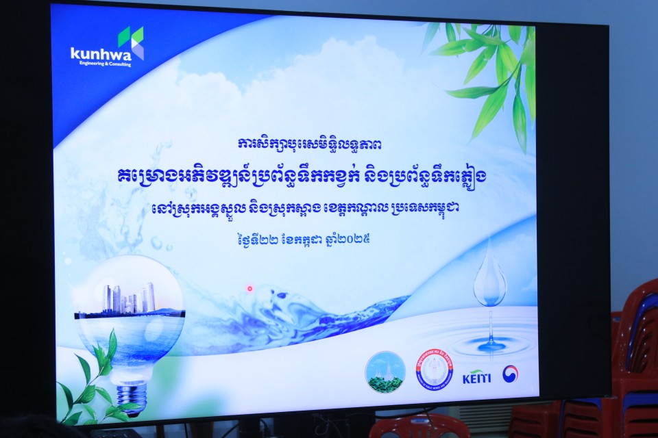 ខេត្តកណ្តាល៖ រសៀលថ្ងៃទី២២ ខែកក្កដា ឆ្នាំ២០២៥ ឯកឧត្តម ហាក់ សុខមករា អភិបាលរងខេត្តកណ្តាល និងឯកឧត្តម សួន និមល អគ្គនាយករង នៃអគ្គនាយកដ្ឋានប្រព័ន្ធចម្លោះទឹកកខ្វក់ បានដឹកនាំកិច្ចប្រជុំការសិក្សា សមិទ្ធិលទ្ធភាពបឋមផែនការអភិវឌ្ឍន៍ប្រព័ន្ធចម្លោះទឹកកខ្វក់ និងបណ្តាញលូ នៅស្រុកអង្គស្នួល និងស្រុកស្អាង ខេត្តកណ្តាល ដែលសិក្សារដោយក្រុមហ៊ុន KUNHWA Engineering and Consulting Co., Ltd។កិច្ចប្រជុំនេះមានការចូលរួមពីមន្ទីរអង្គភាពពាក់ព័ន្ធ ទីចាត់ការចំណុះសាលាខេត្ត រដ្ឋបាលស្រុកដែលពាក់ព័ន្ធ និងមន្ត្រីរាជការជាច្រើនរូបផងដែរ៕
