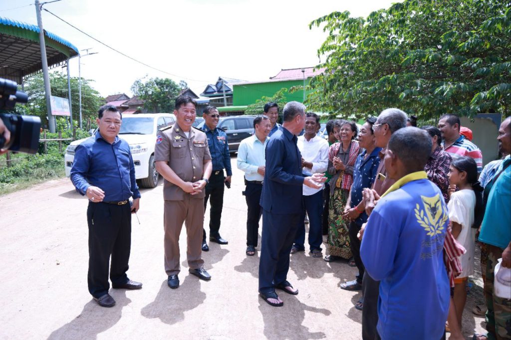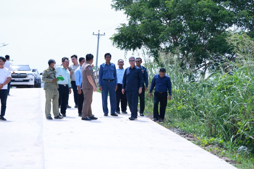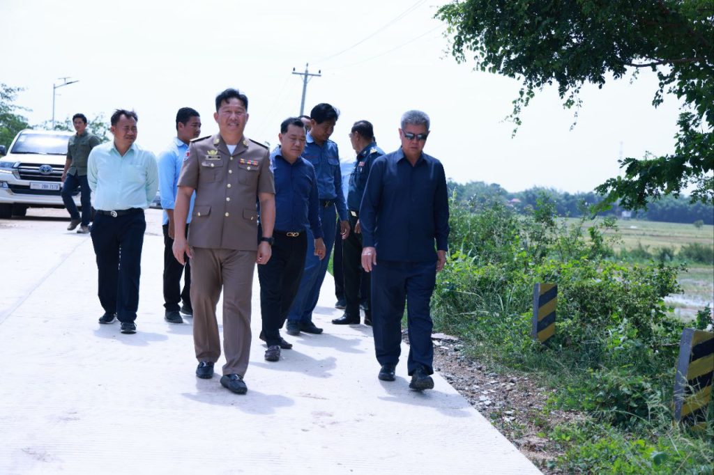 ខេត្តកណ្ដាល៖ នាព្រឹកថ្ងៃទី២៤ ខែកក្កដា ឆ្នាំ២០២៥បន្ទាប់ពីបញ្ចប់ ពិធីបិទផ្សាយជាសាធារណៈនូវឯកសារនៃការវិនិច្ឆ័យ ចំនួន ០៥ភូមិ ក្នុងឃុំព្រែកឬស្សី ស្រុកល្វាឯម ខេត្តកណ្ដាល ឯកឧត្តម គួច ចំរើន អភិបាល នៃគណៈអភិបាលខេត្តកណ្ដាល អញ្ជើញពិនិត្យផ្លូវបេតុងអាមេប្រវែង ១៨០០ម៉ែត្រ ទទឹង៦ម៉ែត្រ កម្រាស់០,១៥ម៉ែត្រ និងសំណេះសំណាលជាមួយប្រជាពលរដ្ឋ ស្ថិតនៅភូមិព្រែកប្រា ឃុំព្រែកឫស្សី ស្រុកល្វាឯម។