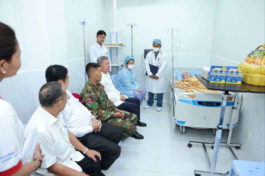 ខេត្តកណ្តាល៖ ព្រឹកថ្ងៃទី២២ ខែសីហា ឆ្នាំ២០២៥ ឯកឧត្ដម គួច ចំរើន អភិបាល នៃគណៈអភិបាលខេត្តកណ្ដាល អញ្ជើញសួរសុខទុក្ខម្ដាយ វីរៈកងទ័ពជួរមុខនៅតំបន់ប្រាសាទតាក្របី កំពង់សម្រាកព្យាបាលនៅមន្ទីរពេទ្យតេជោ សែនកោះធំ ស្ថិតក្នុងភូមិកំពង់ស្វាយក្រោម ឃុំព្រែកថ្មី ស្រុកកោះធំ ខេត្តកណ្តាល។ ក្នុងឱកាសសួរសុខទុក្ខនេះដែរ ឯកឧត្ដម គួច ចំរើន អភិបាល នៃគណៈអភិបាលខេត្តកណ្ដាល និងជាប្រធានគណៈកម្មាធិការសាខាកាកបាទក្រហមកម្ពុជាខេត្តកណ្តាល បាននាំមកនូវការផ្ដាំផ្ញើសាកសួរសុខទុក្ខពីសំណាក់សម្ដេចកិត្តិព្រឹទ្ធបណ្ឌិត ប៊ុន រ៉ានី ហ៊ុន សែន ប្រធានកាកបាទក្រហមកម្ពុជា ដោយក្ដីនឹករលឹកបំផុត។ សូមបញ្ជាក់ផងដែរថា៖ លោកយាយ ស ណែត អាយុ៦៩ឆ្នាំ ត្រូវជាម្ដាយលោក ហ៊ាង វាសនា បម្រើការនៅអនុសេនាតូច ៤៤៤ ជាវីរៈកងទ័ពជួរមុខនៅតំបន់ប្រាសាទតាក្របី ដែលត្រូវបានអនុញ្ញាតច្បាប់ឈប់សម្រាកមកមើលម្ដាយកំពង់មានជំងឺសម្រាកព្យាបាលនៅមន្ទីរពេទ្យតេជោសែនកោះធំ ស្ថិតក្នុងភូមិកំពង់ស្វាយក្រោម ឃុំព្រែកថ្មី ស្រុកកោះធំ ខេត្តកណ្តាល។ ក្នុងឱកាសចុះសួរសុខទុក្ខនេះដែរ ឯកឧត្ដម គួច ចំរើន បាននាំមកនូវអំណោយរបស់សាខាកាកបាទក្រហមកម្ពុជាខេត្តកណ្ដាលជូនដល់លោកយាយ ស ណែត នូវ ផ្លែឈើ ១កន្ត្រក, ទឹកដោះគោ ១កេស, ទឹកត្រចៀកកាំ ២យួរ និងថវិកា ១០លានរៀល ក្នុងនោះដែរឯកឧត្តមក៏បានឧបត្ថម្ភដល់ លោក ហ៊ាង វាសនា វីរៈកងទ័ពជួរមុខននូវថវិកា ៥លានរៀល ផងដែរ។
