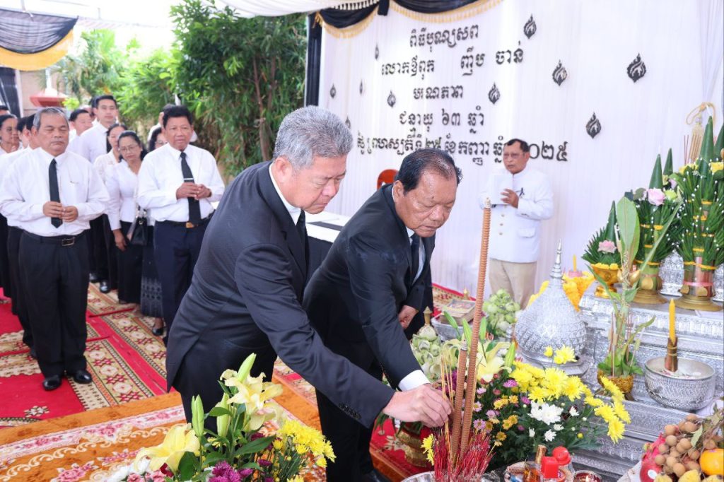 ខេត្តកណ្តាល៖ ព្រឹកថ្ងៃទី២៨ ខែកញ្ញា ឆ្នាំ២០២៥ ឯកឧត្ដម នូ សាខន ប្រធានក្រុមប្រឹក្សាខេត្តកណ្តាល និងឯកឧត្ដម គួច ចំរើន អភិបាល នៃគណៈអភិបាលខេត្តកណ្ដាល ព្រមទាំងឯកឧត្ដម លោកជំទាវ សមាជិកក្រុមប្រឹក្សាខេត្ត មន្ទីរអង្គភាពជុំវិញខេត្ត កងកម្លាំងទាំង៣ និងអាជ្ញាធរស្រុកពញាឮ អញ្ជើញគោរពវិញ្ញាណក្ខន្ធសព លោក ញឹប ចាន់ មេឃុំផ្សារដែក នៅគេហដ្ឋាននៃសព ស្ថិតនៅឃុំផ្សារដែក ស្រុកពញាឮ ខេត្តកណ្តាល។ លោក ញឹប ចាន់ មេឃុំផ្សារដែក បានទទួលមរណភាព កាលពីថ្ងៃព្រហស្បតិ៍ ៣កើត ខែអស្សុជ ឆ្នាំម្សាញ់ សប្តស័ក ព.ស.២៥៦៩ ត្រូវនឹងថ្ងៃទី២៥ ខែកញ្ញា ឆ្នាំ២០២៥ វេលាម៉ោង ១៥:៤៩នាទីរសៀល ក្នុងជន្មាយុ៦៣ឆ្នាំ ដោយរោគាពាធ។ ក្នុងវេលាប្រកបដោយសមានទុក្ខដ៏ក្រៀមក្រំបំផុតនេះ ឯកឧត្ដម នូ សាខន ប្រធានក្រុមប្រឹក្សាខេត្តកណ្តាល និងឯកឧត្ដម គួច ចំរើន អភិបាល នៃគណៈអភិបាលខេត្តកណ្ដាល និងប្រតិភូខេត្តកណ្តាល សូមចូលរួមរំលែកទុក្ខជាមួយ លោកស្រី ចោម សុផាត ព្រមទាំងក្រុមគ្រួសារ និងសូមសម្តែងនូវសេចក្តីសង្វេគចំពោះការបាត់បង់ លោក ញឹប ចាន់ ដែលជាការបាត់បង់នូវ ឧត្តមស្វាមីប្រកបដោយព្រហ្មវិហារធម៌ចំពោះភរិយា និងកូនៗ ចៅៗ ជាទីស្រឡាញ់ដ៏ជ្រាលជ្រៅ។ ឯកឧត្ដមប្រធានក្រុមប្រឹក្សាខេត្ត និងឯកឧត្ដមអភិបាលខេត្ត ព្រមទាំងប្រតិភូទាំងអស់ សូមចូលរួមរំលែកទុក្ខដោយក្តីសោកស្តាយអាឡោះអាល័យ និងសូម បួងសួងដល់គុណព្រះរតនត្រ័យ និងវត្ថុស័ក្តិសិទ្ធិទាំងឡាយក្នុងលោក សូមមេត្តាជួយបីបាច់ថែរក្សាដួងវិញ្ញាណក្ខន្ធ លោក ញឹប ចាន់ បានទៅកាន់សុគតិភពជានិច្ចនិរន្តរ៍កុំបីឃ្លៀងឃ្លាតឡើយ។