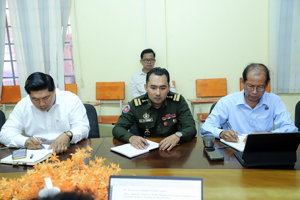 ខេត្តកណ្តាល៖ នាព្រឹកថ្ងៃទី៧ ខែតុលា ឆ្នាំ២០២៥ ឯកឧត្តម ខុន សេរីដ្ឋា អភិបាលរងខេត្តកណ្តាល បានអញ្ជើញដឹកនាំកិច្ចប្រជុំត្រៀមលក្ខណៈ ដើម្បីចូលរួមកិច្ចប្រជុំឆ្លងកាត់ព្រំដែននៅសង្កាត់ទិញបៀន ខេត្តអានយ៉ាង នៃសាធារណរដ្ឋសង្គមនិយមវៀតណាម ដោយមានការអញ្ជើញចូលរួមពី មន្ទីរអង្គភាពពាក់ព័ន្ធ និងអាជ្ញាធរផងដែរ។