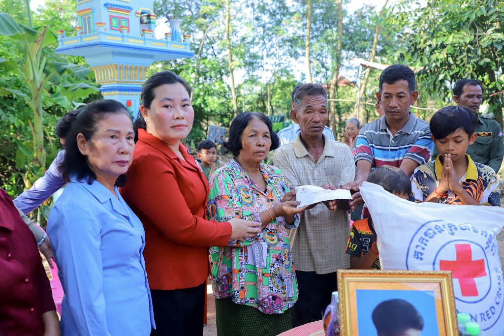 --------------------------------------------ឯកឧត្តម គួច ចំរើន អភិបាល នៃគណៈអភិបាលខេត្តកណ្ដាល និងជាប្រធានគណៈកម្មាធិការសាខាកាកបាទក្រហមកម្ពុជាខេត្ត បានចាត់ឱ្យលោកជំទាវ ស្រ៊ុន ស្រីនាង ហេរញ្ញិកសាខា ដឹកនាំកុ្រមការងារសាខា និងអនុសាខាស្រុកស្អាង ចូលរួមរំលែកទុក្ខ និងនាំយកអំណោយមនុស្សធម៌របស់កាកបាទក្រហមកម្ពុជា ដែលមានសម្តេចកិត្តិព្រឹទ្ធបណ្ឌិត ប៊ុន រ៉ានី ហ៊ុនសែន ជាប្រធាន ទៅចូលបុណ្យដល់គ្រួសាររងគ្រោះដោយលង់ទឹកស្លាប់ចំនួន២នាក់ នៅឃុំក្រាំងយ៉ូវ និងម្នាក់ទៀត នៅឃុំព្រែកអំបិល ដល់លំនៅឋានផ្ទាល់នារសៀលថ្ងៃទី១៦ ខែតុលា ឆ្នាំ២០២៥។ មានមតិសំណេះសំណាលនាឱកាសនោះ លោកជំទាវ ស្រ៊ុន ស្រីនាង ក្នុងនាមឯកឧត្តម គួច ចំរើន ប្រធានគណៈកម្មាធិកាសាខា បាននាំមកនូវការចូលរួមរំលែកទុក្ខដ៏មហាក្រៀមក្រំពីសំណាក់សម្ដេចកិត្តិព្រឹទ្ធបណ្ឌិត ប៊ុន រ៉ានី ហ៊ុន សែន ប្រធានកាកបាទក្រហមកម្ពុជា ដល់គ្រួសារសព។ លោកជំទាវ ស៊្រុន ស្រីនាង បានបញ្ជាក់ថា ទុក្ខលំបាករបស់ប្រជាជនគ្រប់រូប គឺជាក្តីកង្វល់របស់ថ្នាក់ដឹកនាំ ដែលត្រូវតែបានគិតគូរ និងស្វែងរកដំណោះស្រាយបញ្ហាប្រឈមមួយដ៏ល្អប្រសើរ ជាក់ស្តែងដូចជាការនាំយកអំណោយសង្គ្រោះបន្ទាន់មកផ្តល់ជូនដល់ប្រជាជនរងគ្រោះនាពេលនេះជាដើម ទោះបីវាមិនអាចជួយបានទាំងស្រុងក៏ដោយ ក៏ប៉ុន្តែយើងបានចូលរួមចំណែកក្នុងការជួយដោះស្រាយនូវការខ្វះខាតរបស់បងប្អូនបានមួយផ្នែកផងដែរ។ ម៉្យាងទៀតអំណោយដែលសាខាបាននាំយកមកឧបត្ថម្ភជូនបងប្អូននាឱកាសនេះ គឺពុំមានការប្រកាន់នូវពូជសាសន៍ ពណ៌សម្បុរ សាសនា ឬនិន្នាការនយោបាយអ្វីឡើយ។ ក្នុងឱកាសនោះដែរ លោកជំទាវ បានក្រើនរំលឹកដល់ប្រជាពលរដ្ឋទាំងអស់នៅរដូវទឹកឡើងនេះ សូមបងប្អូនប្រជាពលរដ្ឋទាំងអស់ មេត្តាប្រុងប្រយ័ត្នខ្ពស់ ចំពោះក្មេងតូចៗ និងចាស់ជរា មិនត្រូវឱ្យពួកគាត់នៅក្បែរទឹក ឬលេងទឹកឡើយ ដែលអាចបណ្ដើរឱ្យពួកគាត់លង់ទឹកស្លាប់បាន។ លោកជំទាវ ក៏បានផ្តល់នូវការលើកទឹកចិត្តដល់គ្រួសារជនរងគ្រោះ មិនត្រូវបាក់ទឹកចិត្ត និងអស់សង្ឃឹមឡើយ ត្រូវបន្តការខិតខំរកស៊ីចិញ្ចឹមជីវិត និងគ្រួសាររបស់យើងបន្តទៀត។ សម្ភារៈអំណោយដែលសាខាកាកបាទក្រហមកម្ពុជាខេត្តកណ្តាល ចូលរួមបុណ្យជនរងគ្រោះក្នុងគ្រួសារនីមួយៗទទួលបានមាន៖ អង្ករ ២៥គីឡូក្រាម ,មី ១កេស ,ទឹកត្រី ១យួរ ,ទឹកស៊ីអុីវ ១យួរ ,ទឹកសុទ្ធ ១កេស ,ត្រីខ ១យួរ និងថវិកា ៥០ម៉ឺនរៀល។
