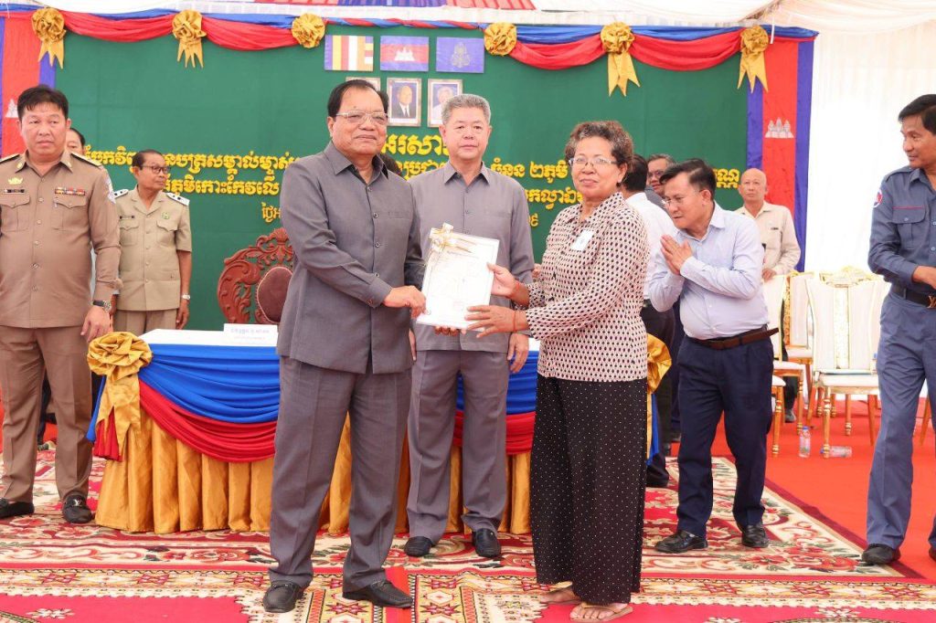 ឯកឧត្តម គួច ចំរើន អភិបាល នៃគណៈអភិបាលខេត្តកណ្ដាល បានកោតសរសើរដល់ប្រជាពលរដ្ឋក្នុងស្រុកល្វាឯម ដែលមានបញ្ហាទំនាស់ដីធ្លីតិចតួចបំផុតបើប្រៀបធៀបជាមួយក្រុង-ស្រុកទាំង១៣ទូទាំងខេត្តកណ្ដាល។ ការថ្លែងកោតសរសើរនេះធ្វើឡើងនៅក្នុងពិធីចែកវិញ្ញាបនបត្រសម្គាល់ម្ចាស់អចលនវត្ថុជូនប្រជាពលរដ្ឋចំនួន ២ ភូមិ សរុបចំនួន ១ ៤៦២ បណ្ណ គឺភូមិកោះកែវលើ និងភូមិកោះកែវក្រោម ឃុំកោះកែវ ស្រុកល្វាឯម ខេត្តកណ្ដាល ក្រោមអធិបតីភាពឯកឧត្ដម នូ សាខន ប្រធានក្រុមប្រឹក្សាខេត្តកណ្ដាល និងឯកឧត្ដម គួច ចំរើន អភិបាល នៃគណៈអភិបាលខេត្តកណ្ដាល នាព្រឹកថ្ងៃទី១៨ ខែវិច្ឆិកា ឆ្នាំ២០២៥ នៅបរិវេណវត្តកោះកែវមុនីរ័ត្ន ស្ថិតនៅឃុំកោះកែវ ស្រុកល្វាឯម ខេត្តកណ្ដាល។ ឯកឧត្តម គួច ចំរើន អភិបាលខេត្តកណ្ដាល បន្តថា៖ បញ្ហាទំនាស់ដីធ្លីមាននៅគ្រប់ក្រុង-ស្រុកក្នុងខេត្តកណ្ដាល ប៉ុន្តែសម្រាប់ស្រុកល្វាឯម គឺជាស្រុកមួយគំរូដែលមានទំនាស់ដីធ្លីតិចតួចបំផុតបើប្រៀបធៀប និងក្រុង-ស្រុកដទៃទៀតទូទាំងខេត្តកណ្ដាល។ ឯកឧត្តមអភិបាលខេត្តកណ្ដាល បានបញ្ជាក់ថា៖ ការចែកប័ណ្ណកម្មសិទ្ធិដីធ្លី ជូនប្រជាពលរដ្ឋនាពេលនេះ គឺជាការរួមចំណែកយ៉ាងសំខាន់ ក្នុងការដោះស្រាយបញ្ហាទំនាស់ដីធ្លី និងជាការផ្ដល់ឱ្យប្រជាពលរដ្ឋមានសិទ្ធិកម្មកាន់កាប់ដីធ្លីរបស់ខ្លួនបានត្រឹមត្រូវស្របតាមច្បាប់ ហើយការទទួលបានប័ណ្ណកម្មសិទ្ធិប្រើប្រាស់ស្របច្បាប់របស់បងប្អូនប្រជាពលរដ្ឋនៅពេលនេះ បានស្ដែងចេញឱ្យឃើញពីការគិតគូរយ៉ាងហ្មត់ចត់របស់រាជរដ្ឋាភិបាល ដែលមានសម្តេចធិបតី ហ៊ុន ម៉ាណែត ជានាយករដ្ឋមន្រ្តី នៃព្រះរាជាណាចក្រកម្ពុជា ដែលបាន និងកំពុងអនុវត្តយ៉ាងសកម្មលើគោលនយោបាយដីធ្លី ជូនដល់ប្រជាពលរដ្ឋ និងដើម្បីផលប្រយោជន៍របស់ប្រជាពលរដ្ឋយ៉ាងពិតប្រាកដ។ ឯកឧត្តមអភិបាលខេត្ត បានគូសបញ្ជាក់បន្ថែមថា៖ ភូមិទាំងពីរដែលទទួលបានបណ្ណកម្មសិទ្ធនាពេលនេះ រាល់ឯកសារទាំងអស់ដែលមិនមែនជាប័ណ្ណកម្មសិទ្ធិនេះមិនអាចយកទៅលក់ ឬយកប្រើប្រាស់អ្វីផ្សេងទៀតបានទេ ហើយបើចង់លក់ ឬយកទៅប្រើប្រាស់អ្វីផ្សេងៗត្រូវចុះបញ្ជីដីធ្លីឡើងវិញ ពិសេសអាជ្ញាធរទាំងអស់មិនអាចបញ្ជាក់លើឯកាសារផ្សេងៗក្រៅពីបណ្ណដីធ្លីនេះបានឡើយ។ ឯកឧត្តមអភិបាលខេត្ត បានផ្ដាំផ្ញើដល់បងប្អូនប្រជាពលរដ្ឋ នៅពេលទទួលបានបណ្ណហើយសូមបងប្អូនប្រជាពលរដ្ឋត្រូវគិតគូទុកដាក់ថែរក្សាឱ្យបានល្អ ពីព្រោះប័ណ្ណកម្មសិទ្ធដីធ្លី គឺពិតជាមានសារៈសំខាន់ និងមានតម្លៃណាស់ ក្នុងការសម្គាល់សិទ្ធិកាន់កាប់ ការទិញលក់ បញ្ចាំ ដីធ្លីរបស់ខ្លួនស្របតាមច្បាប់ ពិសេសដីមានប័ណ្ណកម្មសិទ្ធិត្រឹមត្រូវគឺបញ្ជាក់បានថា ដីមានសុវត្ថិភាព ទទួលស្គាល់ដោយអាជ្ញាធរ ជៀសផុតពីការរំលោភបំពា