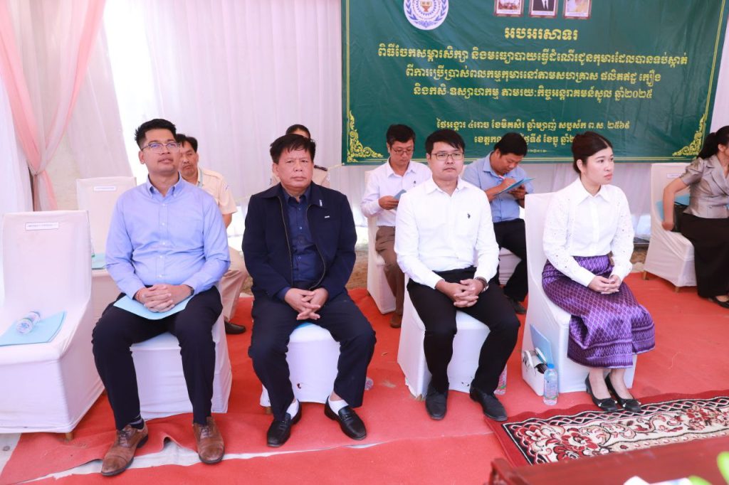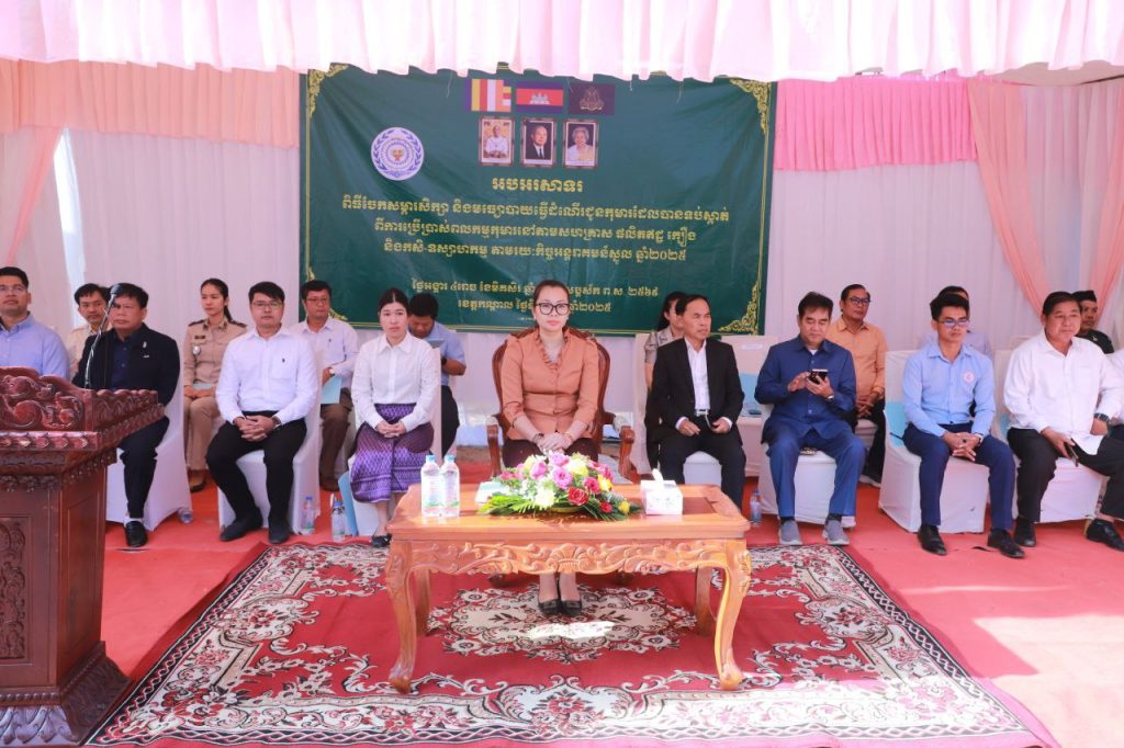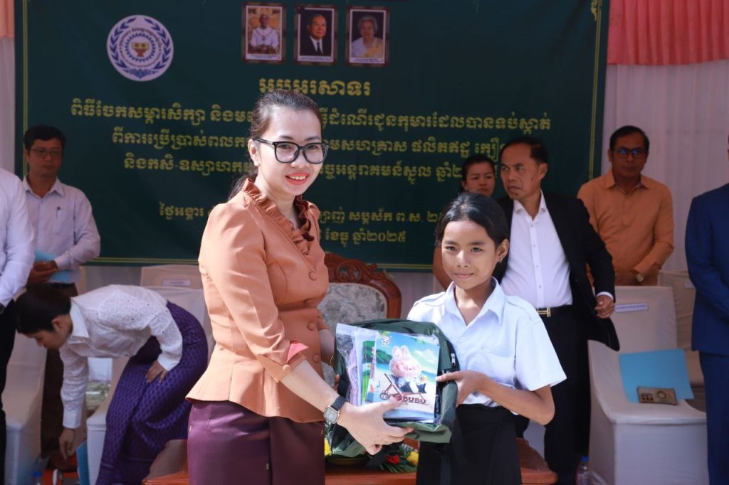 +++++++++++++++++++++++++++ខេត្តកណ្ដាល៖ ដោយអនុវត្តការទប់ស្កាត់ ការការពារ និងបន្តការគាំពារកុមារនៃកិច្ចអន្តរាគន៍ស្នួល ក្រសួងការងារ និងបណ្តុះបណ្តាលវិជ្ជាជីវៈ សហការណ៍ចាមួយរដ្ឋបាលខេត្តកណ្ដាល នៅព្រឹកថ្ងៃទី០៩ ខែធ្នូ ឆ្នាំ២០២៥ បានចែកសម្ភារសិក្សា និងមធ្យោបាយធ្វើដំណើរ(កង់)ជូនដល់កុមារដែលបានទប់ស្កាត់ ពីការប្រើប្រាស់ពលកម្មកុមារ នៅតាមសហគ្រាស ផលិតឥដ្ឋ ក្បឿង និងកសិ-ឧស្សាហកម្ម តាមរយៈគម្រោងកិច្ចអន្តរាគមន៍ស្នួល ឆ្នាំ២០២៥ ក្រោមអធិបតីភាពលោកជំទាវ សុវណ្ណ វណ្ណារតន៍ រដ្ឋលេខាធិការប្រចាំការក្រសួងការងារ និងបណ្តុះបណ្តាលវិជ្ជាជីវៈ ដោយមានការអញ្ជើញចូលរួមពីឯកឧត្តម ឯកឧត្តម ប្រាក់ សារ៉ាត អភិបាលរងខេត្តកណ្តាល មន្ត្រីរាជការ អាជ្ញាធរមូលដ្ឋាន សិស្សានុសិស្ស និងអាណាព្យាបាលសិស្សជាច្រើននាក់ ដែលពីធីនេះប្រារព្ធធ្វើនៅបរិវេណសាលាបឋមសិក្សាឈើទាល ក្នុងឃុំព្រែកអញ្ចាញ ស្រុកមុខកំពូល ខេត្តកណ្ដាល។លោកជំទាវ សុវណ្ណ វណ្ណារតន៍ រដ្ឋលេខាធិការប្រចាំការក្រសួងការងារ និងបណ្តុះបណ្តាលវិជ្ជាជីវៈ បានលើកឡើងថា៖ ការចែកអំណោយសម្ភារសិក្សា និងមធ្យោបាយធ្វើដំណើរនៅពេលនេះ គឺឆ្លុះបញ្ចាំងឱ្យឃើញនូវសេចក្ដីស្រឡាញ់ ស្មារតីយកចិត្តទុកដាក់ខ្ពស់ ក្នុងការលើកកម្ពស់សិទ្ធិកុមារ ជាពិសេស បានចូលរួមអនុវត្តគោលនយោបាយ, វិធានការពាក់ព័ន្ធការលើកកម្ពស់ និងការពារសុខុមាលភាពកុមារ និងកាលានុវត្តភាពនានាសម្រាប់កុមារកម្ពុជា ដែលស្របទៅតាមក្របខណ្ឌច្បាប់ កម្មវិធីនយោបាយ និងយុទ្ធសាស្រ្តបញ្ចកោណ ដំណាក់កាលទី១ របស់រាជរដ្ឋាភិបាលកម្ពុជា។លោកជំទាវ បន្តថា៖ ការលុបបំបាត់ពលកម្មកុមារ គឺជាកិច្ចការអាទិភាពរបស់រាជរដ្ឋាភិបាល ដែលមានចែងនៅក្នុងមុំទី៣ នៃយុទ្ធសាស្រ្តបញ្ចកោណដំណាក់កាលទី១ នីតិកាលទី៧ នៃរដ្ឋសភា និងផែនការយុទ្ធសាស្រ្តអភិវឌ្ឍន៍វិស័យការងារ សន្តិសុខសង្គម និងបណ្តុះបណ្តាលវិជ្ជាជីវៈ (២០២៤-២០២៨)។ ហើយគម្រោងកិច្ចអន្តរាគមន៍ស្នូល មានគោលបំណង ការទប់ស្កាត់ ការការពារ និងបន្តការគាំពារដល់កុមារដែលប្រឈមនឹងពលកម្មកុមារ ឬងាយរងហានិភ័យ នៅតាមវិស័យសិប្បកម្មផលិតឥដ្ឋ ក្បឿង និងកសិ-ឧស្សាហកម្ម និងវិស័យការងារអាទិភាព ដែលមានហានិភ័យខ្ពស់ដ៏ទៃទៀត។ ជំរុញឱ្យកុមារមានឱកាសបន្តការសិក្សាដូចកុមារដទៃទៀតដោយផ្តល់សម្ភារសិក្សា សម្លៀកបំពាក់ ស្បែកជើង កាបូប និងមធ្យោបាយធ្វើដំណើរដល់កុមារ។ លើកកម្ពស់សុខុមាលភាពកុមារ ដោយឧបត្ថម្ភអាហារសម្រន់ដល់កុមារដែលរៀនវគ្គបំប៉នមុនពេលចូលរៀន និងសេវាសង្គមដទៃទៀត។ លើកកម្ពស់បំណិនជីវិតដល់កុមារដែលមានអាយុក្រោម ១៨ឆ្នាំ និងគ្រួសារកុមារតាមរយៈការផ្តល់វគ្គបណ្តុះបណ្តាលជំនាញវិជ្ជាជីវៈ និងបច្ចេកទេស និងការផ្តល់ជាសម្ភារ។ ឆ