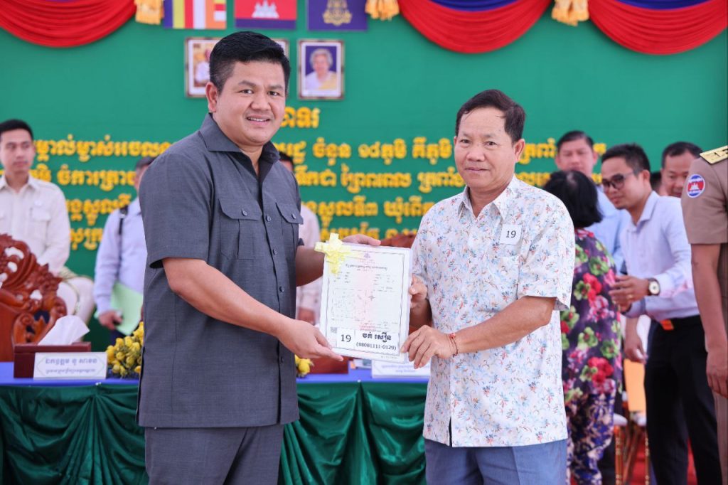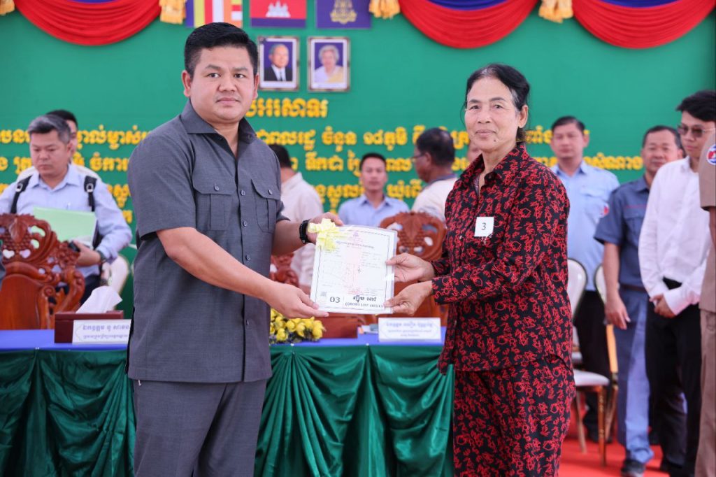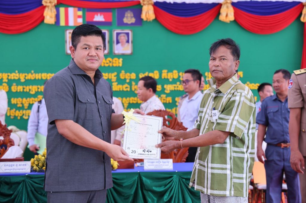 +++++++++++++++++++++++ខេត្តកណ្តាល៖ ព្រឹកថ្ងៃទី១២ ខែធ្នូ ឆ្នាំ២០២៥ រដ្ឋបាលខេត្តកណ្តាល បានចែកវិញ្ញាបនបត្រសម្គាល់ម្ចាស់អចលនវត្ថុជូនប្រជាពលរដ្ឋចំនួន ១៨ភូមិ សរុបចំនួន ១០៨៣៦បណ្ណ នៃឃុំពើក ស្រុកអង្គស្នួល ខេត្តកណ្តាល នៅបរិវេណវត្តចំបក់ ក្រោមអធិបតីភាពឯកឧត្តម ឈឿន ប៊ុណ្ណារ័ត្ន រដ្ឋលេខាធិការក្រសួងរៀបចំដែនដី នគរូបនីយកម្ម និងសំណង់ និងជាប្រធានក្រុមការងារសម្របសម្រួលដោះស្រាយវិវាទដីធ្លីខេត្តកណ្តាល ឯកឧត្តម នូ សាខន ប្រធានក្រុមប្រឹក្សាខេត្តកណ្តាល និងឯកឧត្តម គួច ចំរើន អភិបាល នៃគណៈអភិបាលខេត្តកណ្តាល។ មានប្រសាសន៍ក្នុងពិធីចែកបណ្ណ ឯកឧត្តម គួច ចំរើន អភិបាល នៃគណៈអភិបាលខេត្តកណ្ដាល បានបញ្ជាក់ថា៖ ការចែកប័ណ្ណកម្មសិទ្ធិដីធ្លី ជូនប្រជាពលរដ្ឋនាពេលនេះ គឺជាការរួមចំណែកយ៉ាងសំខាន់ ក្នុងការដោះស្រាយបញ្ហាទំនាស់ដីធ្លី និងជាការផ្ដល់ឱ្យប្រជាពលរដ្ឋមានសិទ្ធិកម្មកាន់កាប់ដីធ្លីរបស់ខ្លួនបានត្រឹមត្រូវស្របតាមច្បាប់ ហើយការទទួលបានប័ណ្ណកម្មសិទ្ធិប្រើប្រាស់ស្របច្បាប់របស់បងប្អូនប្រជាពលរដ្ឋនៅពេលនេះ បានស្ដែងចេញឱ្យឃើញពីការគិតគូរយ៉ាងហ្មត់ចត់របស់រាជរដ្ឋាភិបាល ដែលមានសម្តេចធិបតី ហ៊ុន ម៉ាណែត ជានាយករដ្ឋមន្រ្តី នៃព្រះរាជាណាចក្រកម្ពុជា ដែលបាននឹងកំពុងអនុវត្តយ៉ាងសកម្មលើគោលនយោបាយដីធ្លី ជូនដល់ប្រជាពលរដ្ឋ និងដើម្បីផលប្រយោជន៍របស់ប្រជាពលរដ្ឋយ៉ាងពិតប្រាកដ។ ឯកឧត្ដម អភិបាលខេត្ត បន្តថា៖ រដ្ឋបាលខេត្តកណ្ដាល ប្ដេជ្ញាចេញបានកម្មសិទ្ធិដីជូនប្រជាពលរដ្ឋឱ្យអស់ នៅមុនបុណ្យចូលឆ្នាំថ្មីប្រពៃណីជាតិខ្មែរឆ្នាំ២០២៦ខាងមុខនេះ ដោយផ្អែកទៅតាមលទ្ធផលការងារកន្លងមក ខេត្តកណ្ដាល នៅសល់២៨ភូមិទៀត ដែលត្រូវបិទផ្សាយ និងនៅសល់ប្រមាណជិត៣០០ភូមិទៀត ដែលត្រូវបន្តចែកវិញ្ញាបនបត្រសម្គាល់ម្ចាស់អចលនវត្ថុ ជូនប្រជាពលរដ្ឋ។ ឯកឧត្តមអភិបាលខេត្ត បានគូសបញ្ជាក់បន្ថែមថា៖ ភូមិ១៨ដែលទទួលបានបណ្ណកម្មសិទ្ធនាពេលនេះ រាល់ឯកសារទាំងអស់ដែលមិនមែនជាប័ណ្ណកម្មសិទ្ធិនេះ មិនអាចយកទៅលក់ ឬយកប្រើប្រាស់អ្វីផ្សេងទៀតបានទេ ហើយបើចង់លក់ ឬយកទៅប្រើប្រាស់អ្វីផ្សេងៗត្រូវចុះបញ្ជីដីធ្លីឡើងវិញ ពិសេសអាជ្ញាធរទាំងអស់មិនអាចបញ្ជាក់លើឯកាសារផ្សេងៗក្រៅពីបណ្ណដីធ្លីនេះបានឡើយ។ ឯកឧត្តមអភិបាលខេត្ត បានផ្ដាំផ្ញើដល់បងប្អូនប្រជាពលរដ្ឋ នៅពេលទទួលបានបណ្ណហើយសូមបងប្អូនប្រជាពលរដ្ឋត្រូវគិតគូទុកដាក់ថែរក្សាឱ្យបានល្អ ពីព្រោះប័ណ្ណកម្មសិទ្ធដីធ្លី គឺពិតជាមានសារៈសំខាន់ និងមានតម្លៃណាស់ ក្នុងការសម្គាល់សិទ្ធិកាន់កាប់ ការទិញលក់ បញ្ចាំ ដីធ្លីរបស់ខ្លួនស្របតាមច្បាប់ ពិសេសដីមានប័ណ្ណកម្មសិទ្ធិត្រឹមត្រូវគឺបញ្ជាក់បានថា ដីមានសុវត្ថិភាព ទទួលស្គាល់ដោ