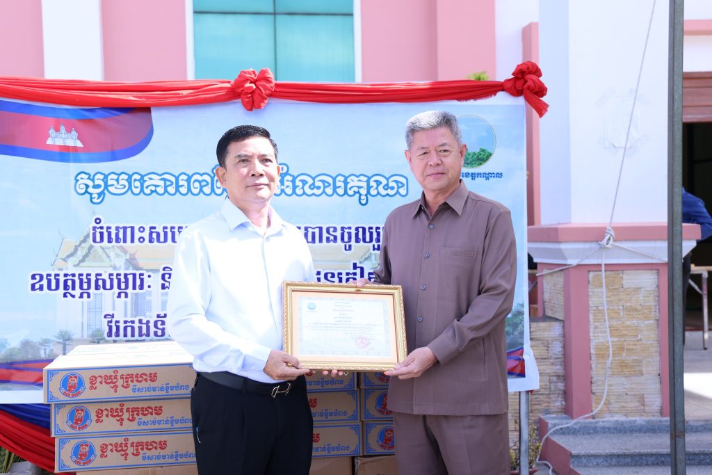 រដ្ឋបាលខេត្តកណ្ដាល សូមថ្លែងអំណរគុណយ៉ាងជ្រាលជ្រៅចំពោះ សប្បុសជននានា ដែលបានឧបត្ថម្ភស្បៀង ជាគ្រឿងឧបភោគបរិភោគ និងថវិកាចំយចំនួន ដើម្បីជូនដល់ជនភៀសសឹកត្រូវបានជម្លៀសខ្លួនមកកាន់មណ្ឌលសុវត្ថិភាពនានា នៅតាមបន្ទាត់ព្រំដែនកម្ពុជា-ថៃ និងជូនដល់វីរៈកងទ័ពជួរមុខ ដែលបាននឹងកំពុងខិតខំតស៊ូការពារបូរណភាពទឹកដី ប្រកបដោយភាពក្លាហាន មុះមុត ប្រឆាំងនឹងសត្រូវឈ្លានពានថៃ ដោយស្មារតីស្នេហាជាតិមាតុភូមិ ។ រដ្ឋបាលខេត្តកណ្ដាល សូមបួងសួងដល់គុណព្រះរតនត្រ័យកែវទាំងបី សូមព្រះអង្គជួយប្រោះព្រំ ប្រសិទ្ធពរជ័យ បវរសួស្តី មហាប្រសើរ សូមជួយថែរក្សាដល់ សប្បុសជនទាំងអស់ សូមទទួលបាននូវពុទ្ធពរទាំងបួនប្រការគឺ៖ អាយុ វណ្ណៈ សុខៈ ពលៈកុំបីឃ្លៀងឃ្លាតឡើយ។