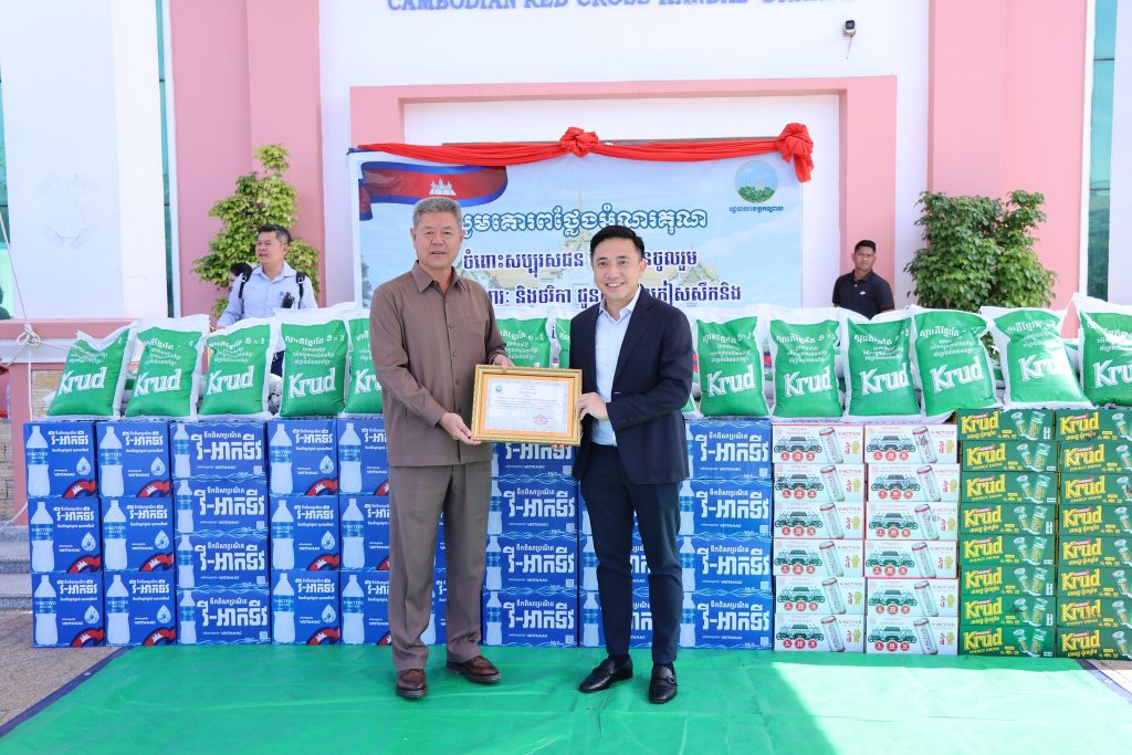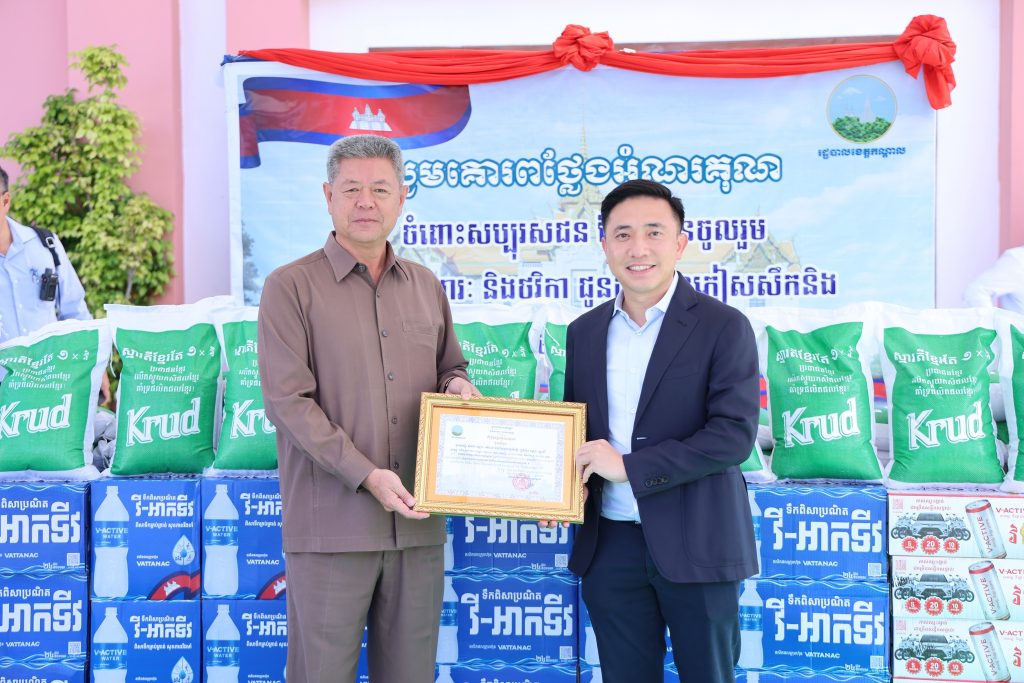 រដ្ឋបាលខេត្តកណ្ដាល សូមថ្លែងអំណរគុណយ៉ាងជ្រាលជ្រៅចំពោះ អ្នកឧកញ៉ា សំអាង វឌ្ឍនៈ អភិបាល និងជានាយកប្រតិបត្តិ ក្រុមហ៊ុន វឌ្ឍនៈ ប្រ៊ូវើរី ដែលបានឧបត្ថម្ភថវិកា $10,000 អង្ករ, 1,000បាវ(10kg ក្នុង១បាវ), ទឹកសុទ្ធ V-Active 1.5L 2000កេស, ភេសជ្ជៈ V-Active Sports Red 500កេស និងភេសជ្ជៈ Krud 500កេស ដើម្បីជូនដល់ជនភៀសសឹកត្រូវបានជម្លៀសខ្លួនមកកាន់មណ្ឌលសុវត្ថិភាពនានា នៅតាមបន្ទាត់ព្រំដែនកម្ពុជា-ថៃ និងជូនដល់វីរៈកងទ័ពជួរមុខ ដែលបាននឹងកំពុងខិតខំតស៊ូការពារបូរណភាពទឹកដី ប្រកបដោយភាពក្លាហាន មុះមុត ប្រឆាំងនឹងសត្រូវឈ្លានពានថៃ ដោយស្មារតីស្នេហាជាតិមាតុភូមិ ។ រដ្ឋបាលខេត្តកណ្ដាល សូមបួងសួងដល់គុណព្រះរតនត្រ័យកែវទាំងបី សូមព្រះអង្គជួយប្រោះព្រំ ប្រសិទ្ធពរជ័យ បវរសួស្តី មហាប្រសើរ សូមជួយថែរក្សាដល់ អ្នកឧកញ៉ា និងក្រុមគ្រួសារ សូមទទួលបាននូវពុទ្ធពរទាំងបួនប្រការគឺ៖ អាយុ វណ្ណៈ សុខៈ ពលៈកុំបីឃ្លៀងឃ្លាតឡើយ។
