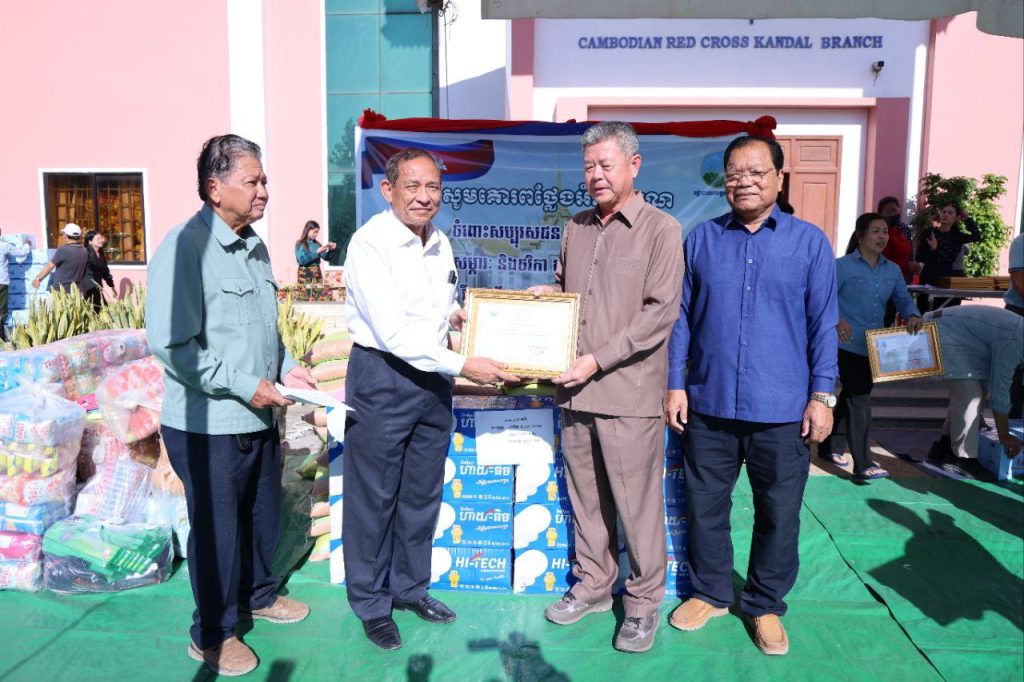ខេត្តកណ្ដាល៖ រសៀលថ្ងៃទី១៧ ខែធ្នូ ឆ្នាំ២០២៥ ឯកឧត្ដម នូ សាខន ប្រធានក្រុមប្រឹក្សាខេត្តកណ្ដាល និងឯកឧត្ដម គួច ចំរើន អភិបាល នៃគណៈអភិបាលខេត្តកណ្ដាល អញ្ជើញទទួលអំណោយ ជាថវិកា គ្រឿងឧបភោគបរិភោគ និងសម្ភារៈប្រើប្រាស់មួយចំនួន ពីសប្បុរសជននានា ដើម្បីជូនដល់ជនភៀសសឹកត្រូវបានជម្លៀសខ្លួនមកកាន់មណ្ឌលសុវត្ថិភាពនានា នៅតាមបន្ទាត់ព្រំដែនកម្ពុជា-ថៃ និងជូនដល់វីរៈកងទ័ពជួរមុខ ដែលបាននឹងកំពុងខិតខំតស៊ូការពារបូរណភាពទឹកដី ប្រកបដោយភាពក្លាហាន មុះមុត ប្រឆាំងនឹងសត្រូវឈ្លានពានថៃ ដោយស្មារតីស្នេហាជាតិមាតុភូមិ។ ក្នុងមានរដ្ឋបាលខេត្តកណ្ដាល ឯកឧត្ដម គួច ចំរើន សូមថ្លែងអំណរគុណយ៉ាងជ្រាលជ្រៅចំពោះ សប្បុរសជន ដែលបានចំណាយនូវទ្រព្យសម្បិត្តផ្ទាល់ខ្លួន ដើម្បីជូនដល់ជនភៀសសឹក និងជាការលើកទឹកចិត្តដល់វីរៈកងទ័ពរបស់យើងមានស្មារតីក្លាហាន មុះមុត ខិតខំតស៊ូការពារបូរណភាពទឹកដី ប្រឆាំងនឹងសត្រូវឈ្លានពានថៃ ដែលនេះសបញ្ជាក់ឱ្យឃើញថា បងប្អូនខ្មែរគ្រប់ស្រទាប់វណ្ណៈបានសាមគ្គីគ្នាជាធ្លុងមួយក្លាយជាខឿនការពារជាតិប្រជាជនគឺសមរភូមិក្រោយជួយដល់សមរភូមិមុខ និងបងប្អូនប្រជាពលរដ្ឋ ដែលត្រូវបានជម្លៀសខ្លួនមកកាន់មណ្ឌលសុវត្ថិភាពនានា។ ឯកឧត្ដមអភិបាលខេត្ត បានសន្យាថាអំណោយ និងសម្ភារៈទាំងអស់នេះ រដ្ឋបាលខេត្តកណ្តាល និងត្រូវបែងចែកដឹកជញ្ជូនទៅជូនកងទ័ពជួរមុខភ្លាមៗ និងបងប្អូនប្រជាពលរដ្ឋ ដែលជាជនភៀសសឹកតាមដែលអាចធ្វើបាន។ សូមបញ្ជាក់ផងដែរថា រដ្ឋបាលខេត្តកណ្ដាល បានបញ្ជូនសម្ភារៈដែលទទួលបានពីសប្បុរសជននានា បានចាត់បញ្ជូនដល់ដល់ជនភៀសសឹក និងវីរៈកងទ័ពជារៀងរាល់ថ្ងៃ គិតមកដល់ពេលនេះរដ្ឋបាលខេត្តកណ្ដាលបានបញ្ជូន ស្បៀងអាហារ ភេសជ្ជៈ អាហារក្រៀម និងសម្ភារៈមួយចំនួន បានចំនួន ៨ គ្រឿង ដោយមួយគ្រឿងមានចំណុះ ១៥ តោន។រដ្ឋបាលខេត្តកណ្ដាល សូមបួងសួងដល់គុណព្រះរតនត្រ័យកែវទាំងបី សូមព្រះអង្គជួយប្រោះព្រំ ប្រសិទ្ធពរជ័យ បវរសួស្តី មហាប្រសើរ សូមជួយថែរក្សាដល់ សប្បុរសជនទាំងអស់ សូមទទួលបាននូវពុទ្ធពរទាំងបួនប្រការគឺ៖ អាយុ វណ្ណៈ សុខៈ ពលៈកុំបីឃ្លៀងឃ្លាតឡើយ។