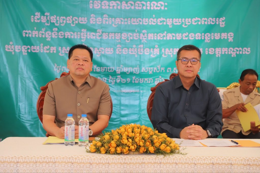 មន្ត្រីជំនាញនៃក្រសួងក្រសួងរ៉ែ និងថាមពល លើកទឹកចិត្តដល់ប្រជាពលរដ្ឋដែលរស់នៅតាមបណ្ដោយទន្លេមេគង្គ ក្នុងស្រុកល្វាឯម និងស្រុកកៀនស្វាយ សូមរាយការណ៍ទៅក្រសួង ក្នុងករណីដែលក្រុមហ៊ុនបូមខ្សាច់ បូមខុសទីតាំង និងម៉ោងដែលបានកំណត់ ការថ្លែងលើកទឹកចិត្តដល់បងប្អូនប្រជាពលរដ្ឋបែបនេះ គឺធ្វើឡើងនៅក្នុងវេទិកាសាធារណៈ ដើម្បីផ្សព្វផ្សាយ និងពិគ្រោះយោបល់ជាមួយប្រជាពលរដ្ឋពាក់ព័ន្ធនឹងការធ្វើអាជីវកម្មខ្សាច់ ស្ថិតនៅតាមដងទន្លេមេគង្គ ក្នុងឃុំបន្ទាយដែក ស្រុកកៀនស្វាយ និងឃុំបឹងគ្រំ ស្រុកល្វាឯម ខេត្តកណ្តាល ក្រោមអធិបតីភាពឯកឧត្តម ខុន សេរីរដ្ឋា អភិបាលរងខេត្តកណ្ដាល និងលោក កែវ ទួត អគ្គនាយករង អគ្គនាយកដ្ឋានធនធានរ៉ែ នៃក្រសួង រ៉ែ និងថាមពល នាព្រឹកថ្ងៃទី២១ ខែមករា ឆ្នាំ២០២៦ នៅវបរិវេណវត្តជ្រៃបឹងគ្រំ ស្ថិតនៅភូមិបឹងគ្រំលើ ឃុំបឹងគ្រំ ស្រុកល្វាឯម ខេត្តកណ្តាល។ លោក កែវ ទួត អគ្គនាយករង អគ្គនាយកដ្ឋានធនធានរ៉ែ បានលើកឡើងថា៖ បងប្អូនប្រជាពលរដ្ឋនៅតាមដងទន្លេទាំងអស់ មេត្តាចូលរួមតាមដាននូវរាល់សកម្មភាពនានាដែលខុសពីលក្ខខ័ណ្ឌរបស់ក្រសួងក្នុងការបូមខ្សាច់ ដូចជាបូមខ្សាច់លើសម៉ោងកំណត់ បូមខុសទីតាំងដែលក្រសួងបានកំណត់ និងការដឹកជញ្ជូនខ្សាច់ខុសបទដ្ឋានបច្ចេកទេស ត្រូវរាយការណ៍មកអាជ្ញាធរ និងក្រសួងជាបន្ទាន់តាមរយៈលេខទូរស័ព្ទលេខ 095 727 727 បានគ្រប់ពេលវេលា ហើយថែមទាំងរក្សានូវការសម្ងាត់ជូនផងដែរ ដើម្បីឱ្យក្រសួងចាត់វិធានការផាកពិន័យ ឬអាចឈានទៅដល់ការបិទអាជីវកម្មតែម្ដង។ លោកអគ្គនាយករង បានបញ្ចាក់ថា៖ ខាងក្រសួងក៏ដូចជាអាជ្ញាធរខេត្ត បានតម្រូវឱ្យក្រុមហ៊ុនធ្វើអាជីវកម្មខ្សាច់ ត្រូវអនុវត្តឱ្យបានតាមកិច្ចសន្យា និងលក្ខខណ្ឌដែលមានក្នុងអាជ្ញាប័ណ្ណ មិនត្រូវបូមនៅខុសពីកន្លែងដែលបានកំណត់ ឬបូមកៀកច្រាំងទន្លេជាដាច់ខាត ករណីធ្វើខុសកិច្ចសន្យា អាចប្រឈមនឹងការផាកពិន័យតាមច្បាប់កំណត់ ឬបិទអាជ្ញាប័ណ្ណតែម្ដង។ ក្នុងឱកាសនោះដែរ ឯកឧត្តម ខុន សេរីរដ្ឋា អភិបាលរងខេត្តកណ្តាល បានមានប្រសាសន៍ថា៖ ស្របពេលដែលប្រទេសយើងកំពុងតែមានការអភិវឌ្ឍដូចច្នេះ ខ្សាច់ដែលបានមកពីអាជីវកម្មនេះ គឺសំខាន់ណាស់ សម្រាប់យកទៅកសាងហេដ្ឋារចនាសម្ពន្ធ័ សាលារៀន អាគារផ្សេងៗ និងដើម្បីចាក់បំពេញទីតាំងមួយចំនួន ដើម្បីប្រយោជន៍ក្នុងការងារអភិវឌ្ឍនៅនាមមូលដ្ឋាន។ ឯកឧត្តម អភិបាលរងខេត្ត បានបន្តទៀតថា៖ ក្រុមហ៊ុនមុននឹងធ្វើអាជីវកម្មនៅទីនេះ គឺក្រសួងធនធានទឹក និងឧតុនិយម បានសិក្សាអំពី លំហូរទឹកទន្លេ ល្បឿនទឹក ស្ថានភាពច្រាំង និងកិច្ចការបច្ចេកទេសសំខាន់ៗច្បាស់លាស់ណាស់ ចំណែកក្រសួងបរិស្ថានវិញបានសិក្សាអំពីហេតុប៉ះពាល់បរិស្ថាន ពិនិត្យជីវចម្រុះដែលមាន ដូចជា ត