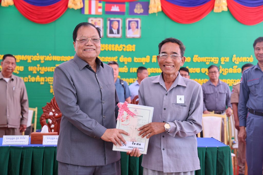 ឯកឧត្តម គួច ចំរើន អភិបាលខេត្តកណ្តាល បានស្នើដល់អាជ្ញាធរក្រុង-ស្រុកទាំងអស់ត្រូវយកចិត្តទុកដាក់ចំពោះបញ្ហាចគ្រោះថ្នាក់រាចរណ៏ ត្រូវបន្តខិតខំដាក់ចេញនូវវិធានការនានាសំដៅកាត់បន្ថយគ្រោះថ្នាក់ចរាចរណ៏ក្នុងមូលដ្ឋានខេត្តកណ្តាល ឱ្យមានការថយចុះជាលំដាប់ ពិសេសសូមបងប្អូនប្រជាពលរដ្ឋទាំងអស់គោរពច្បាប់ចរាចរណ៍ និងមានការប្រុងប្រយ័ត្នខ្ពស់ក្នុងការបើកបរ សូមកុំខ្លាចតែប៉ូលីសចរាចរណ៍ ត្រូវខ្លាចការបាត់បង់ជីវិតវិញទើបជារឿងសំខាន់។ ដោយឡែកសម្រាប់យុវជន សូមជៀសឱ្យឆ្ងាយពីគ្រឿងញៀន សូមយុវជនជួយអប់រំណែនាំដល់មិត្តភក្កិ ជៀសឱ្យឆ្ងាយពីគ្រឿងញៀន ករណីចាំបាច់ត្រូវរាយការណ៍មកសមត្ថកិច្ចដើម្បីចាត់វិធានការបញ្ជូនមកដាក់មណ្ឌលបន្សាបគ្រឿងញៀន ជាពិសេសសូមរួមគ្នាប្រើប្រាស់ App Nodrug ដើម្បីរាយការណ៍កាន់សមត្ថកិច្ចដោយរក្សាការសំងាត់ ដើម្បីបង្ក្រាប និងលុបបំបាត់ការប្រើប្រាស់គ្រឿងញៀន។ឯកឧត្តមអភិបាលខេត្ត បានស្នើឡើងដូច្នេះ ក្នុងឱកាសដែល ឯកឧត្តម គួច ចំរើន អភិបាលខេត្តកណ្តាល និងឯកឧត្តម នូ សាខន ប្រធានក្រុមប្រឹក្សាខេត្ត អញ្ជើញជាគណៈអធិបតី ក្នុងពិធីចែកប័ណ្ណកម្មសិទ្ធិដីធ្លី ឬវិញ្ញាបនបត្រសម្គាល់ម្ចាស់អចលនវត្ថុចំនួន ២០,៦១៥ប័ណ្ណ ជូនប្រជាពលរដ្ឋចំនួន ២៣ភូមិ ក្នុងឃុំទួលព្រេជ ស្រុកអង្គស្នួល នាព្រឹកថ្ងៃទី១១ ខែមីនា ឆ្នាំ២០២៦ នៅក្នុងបរិវេណវត្តឱង្ការ ស្ថិតនៅក្នុងភូមិថ្មី ឃុំទួលព្រេជ ស្រុកអង្គស្នួល។