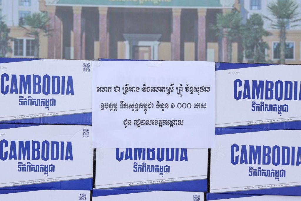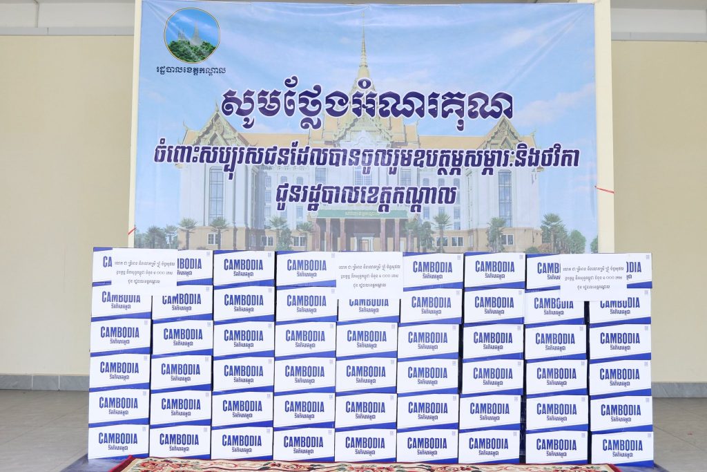 ខេត្តកណ្ដាល ៖ រសៀលថ្ងៃទី១៣ ខែមីនា ឆ្នាំ២០២៦ ឯកឧត្ដម គួច ចំរើនអភិបាល នៃគណៈអភិបាលខេត្តកណ្តាល ក្នុងនាមរដ្ឋបាលខេត្តកណ្ដាល សូមថ្លែងអំណរគុណយ៉ាងជ្រាលជ្រៅជូន លោក ជា ទ្រីអាង និងលោកស្រី ព្រុំ ច័ន្ទសុផល ឧបត្ថម្ភ ទឹកសុទ្ធកម្ពុជា ចំនួន ១ ០០០ កេស ជូន រដ្ឋបាលខេត្តកណ្តាលសម្រាប់ប្រើប្រាស់ក្នុងការងារមនុស្សធម៌ និងប្រើប្រាស់តាមតម្រូវការចាំបាច់របស់រដ្ឋបាលខេត្ត” ។សូមប្រសិទ្ធពរជ័យ សិរីមង្គល វិបុលសុខ និងពុទ្ធពរទាំងបួនប្រការគឺ អាយុ វណ្ណៈ សុខៈ ពលៈ កុំបីឃ្លៀងឃ្លាតឡើយ៕