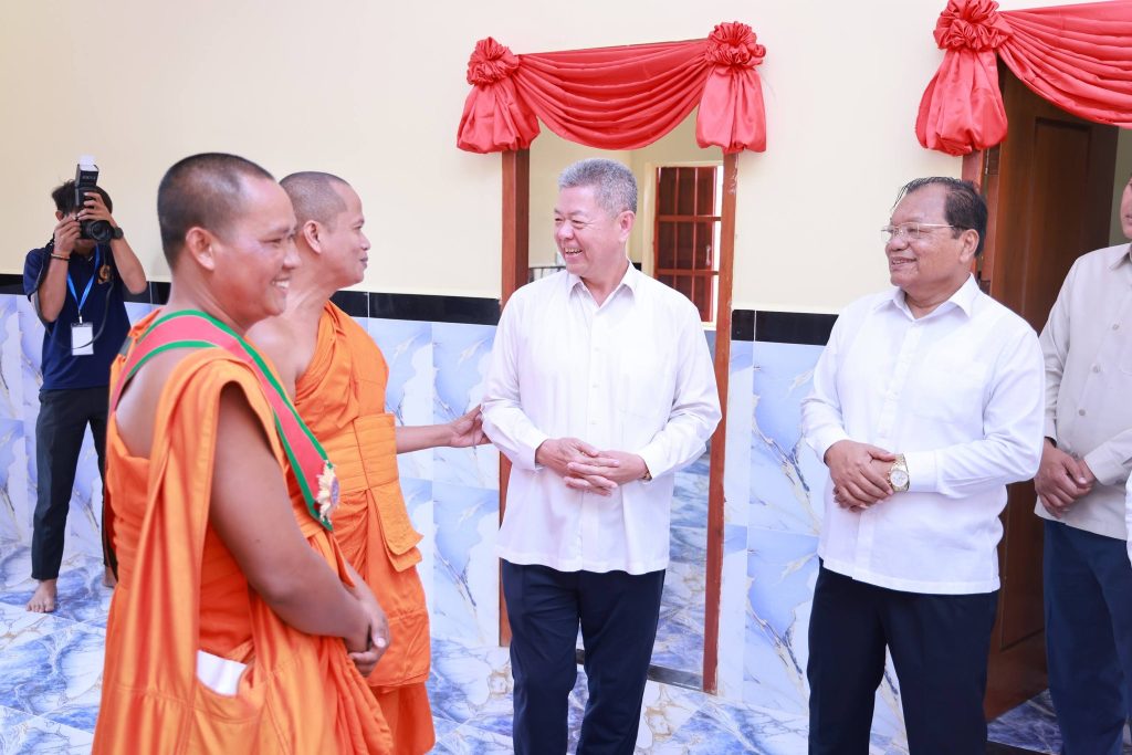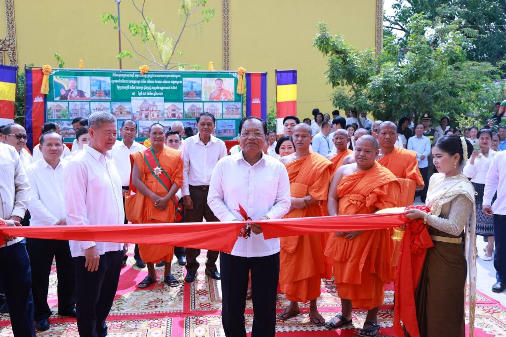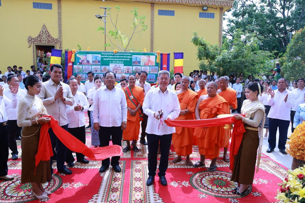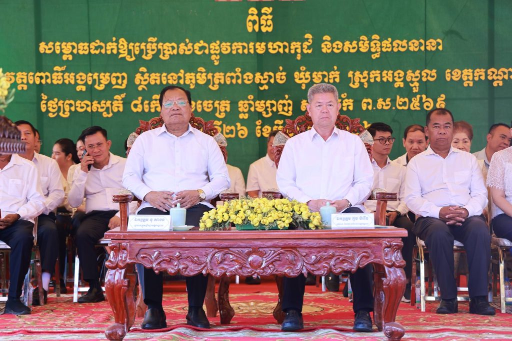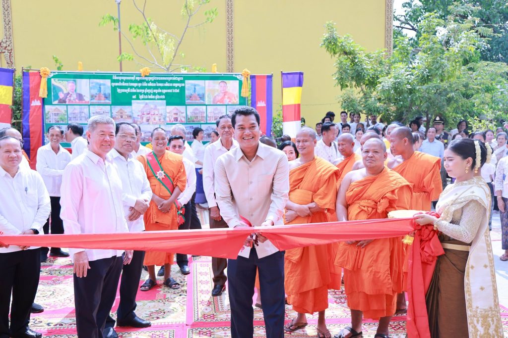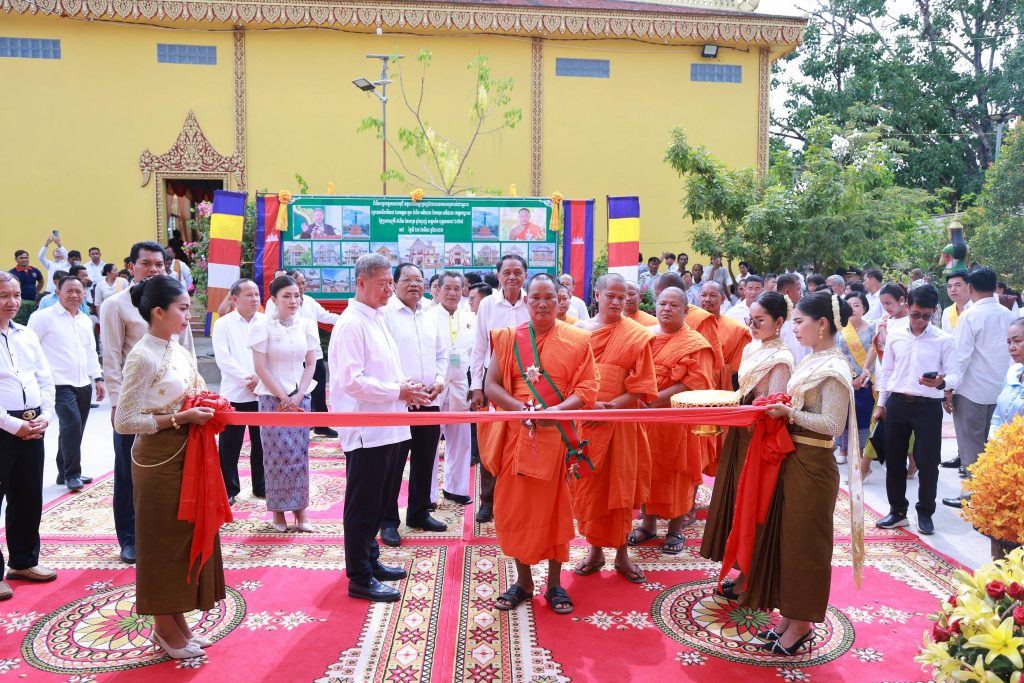 +++++++++++++++++++++++++ខេត្តកណ្ដាល៖ ព្រឹកថ្ងៃទី២៦ ខែមីនា ឆ្នាំ២០២៦ ឯកឧត្ដម នូ សាខន ប្រធានក្រុមប្រឹក្សាខេត្តកណ្ដាល និងឯកឧត្ដម គួច ចំរើន អភិបាល នៃគណៈអភិបាលខេត្តកណ្ដាល អញ្ជើញជាគណៈធិបតីក្នុងពិធីសម្ពោធដាក់ឱ្យប្រើប្រាស់ជាផ្លូវការ មហាកុដិ និងសមិទ្ធផលនានា ក្នុងវត្តពោធិ៍អង្គម្រេញ ស្ថិតនៅភូមិត្រពាំងស្មាច់ ឃុំម្កាក់ ស្រុកអង្គស្នួល ខេត្តកណ្ដាល។ ដែឡពិធីនេះមានការអញ្ជើញចូលរួមពីសំណាក់ ឯកឧត្តម លោកជំទាវ សមាជិកក្រុមប្រឹក្សាខេត្ត កងកម្លាំងទាំងបី មន្ទីរ-អង្គភាពជុំវិញខេត្ត អាជ្ញាធរស្រុកអង្គស្នួល លោកគ្រូ អ្នកគ្រូ សិស្សានុសិស្ស និងប្រជាពលរដ្ឋ ជាច្រើននាក់។លោក នូ សុវណ្ណរិទ្ធ អភិបាលស្រុកអង្គស្នួល បានឱ្យដឹងថា៖ ព្រះសីលជោតិញាណ សឿង ធី ព្រះចៅអធិការវត្តពោធិ៍អង្គម្រេញ ព្រះថេរានុត្ថេរៈគ្រប់ព្រះអង្គ គណៈកម្មការវត្ត សប្បុរសជន ពុទ្ធបរិស័ទជិតឆ្ងាយ ដែលបានខិតខំលះបង់យកអស់កម្លាំងកាយចិត្ត ប្រាជ្ញាស្មារតី និងកៀរគរធនធានថវិកា ប្រកបដោយសទ្ធាជ្រះថ្លា ក្នុងការកសាងទ្រទ្រង់វត្ត រហូតសម្រេចបាននូវសមិទ្ធផលគួរជាទីមោទនៈ ដែលត្រូវបានដាក់សម្ពោធឱ្យប្រើប្រាស់នាថ្ងៃនេះ សរុបជាបច្ច័យកសាងជិត ៤០ ម៉ឺនដុល្លារ ។មានប្រសាសន៍ក្នុងពិធីនេះដែរឯកឧត្ដម គួច ចំរើន អភិបាល នៃគណៈអភិបាលខេត្តកណ្ដាល បាននាំការផ្តាំផ្ញើសាកសួរសុខទុក្ខប្រកបដោយក្តីនឹករលឹកពី សម្តេចអគ្គមហាសេនាបតីតេជោ ហ៊ុន សែន ប្រធានព្រឹទ្ធសភា និង សម្តេចកិត្តិព្រឹទ្ធបណ្ឌិត ព្រមទាំង សម្តេចមហាបវរធិបតី ហ៊ុន ម៉ាណែត នាយករដ្ឋមន្រ្តី នៃព្រះរាជា-ណាចក្រកម្ពុជា និង លោកជំទាវបណ្ឌិត។ឯកឧត្ដម អភិបាលខេត្តកណ្ដាល បន្តថា៖សមិទ្ធផលទាំងនេះ មិនត្រឹមតែផ្ដល់ជាទីសេនាសនៈ ប្រគេនព្រះសង្ឃគង់អាស្រ័យ និងបំពេញសមណធម៌ប៉ុណ្ណោះទេ ប៉ុន្តែជាតឹកតាងបង្ហាញពីភាពរឹងមាំ និងកម្លាំងសាមគ្គីភាពដ៏ប្រពៃថ្លៃថ្លា ក្នុងការទ្រទ្រង់វិស័យព្រះពុទ្ធសាសនា ឱ្យកាន់តែរុងរឿង តទៅមុខជានិរន្តន៍។