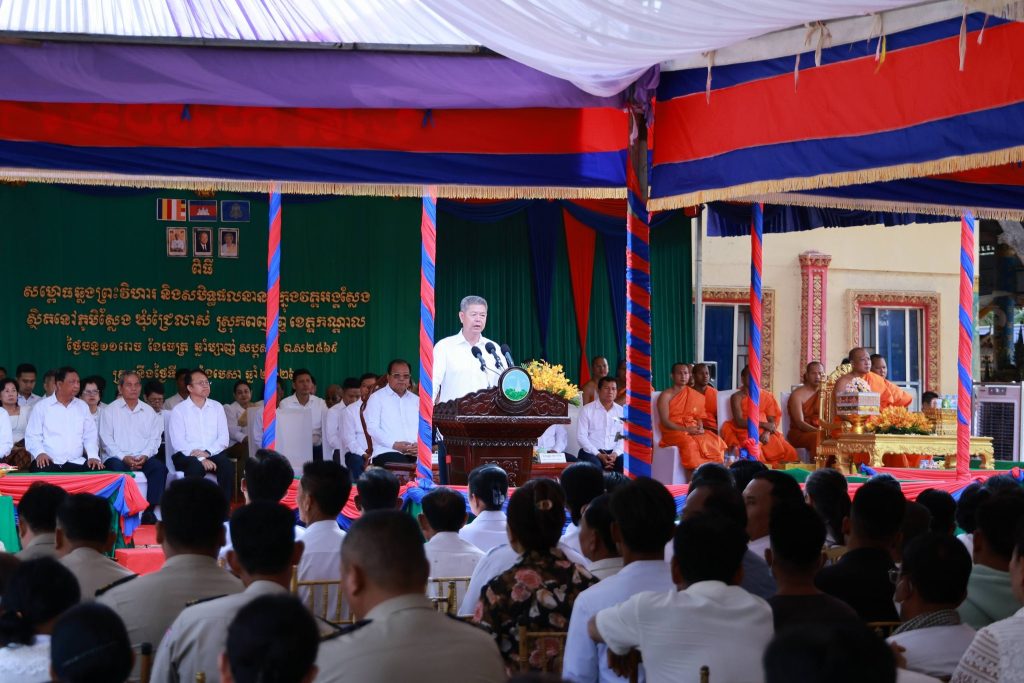 +++++++++++++++++ខេត្តកណ្តាល៖ ព្រឹកថ្ងៃទី១៣ ខែមេសា ឆ្នាំ២០២៦ ឯកឧត្តម នូ សាខន ប្រធានក្រុមប្រឹក្សាខេត្តកណ្តាល និងឯកឧត្តម គួច ចំរើន អភិបាល នៃគណៈអភិបាលខេត្តកណ្តាល អញ្ជើញជាអធិបតីភាពក្នុងពិធីសម្ពោធសមិទ្ធផលនានា ក្នុងវត្តអង្គស្លែង ភូមិស្លែង ឃុំជ្រៃលាស់ ស្រុកពញាឮ ខេត្តកណ្តាល។ ពិធីនេះដែរមានការអញ្ជើញចូលរួមពីថ្នាក់ដឹកនាំខេត្ត មន្ត្រីរាជការ ព្រះសង្ឍ និងពុទ្ធបរិស័ទ ជាច្រើនអង្គនាក់។មានប្រសាសន៍ក្នុងពិធីសម្ភោធនេះដែរ ឯកឧត្តម គួច ចំរើន អភិបាល នៃគណៈអភិបាលខេត្តកណ្តាល បានកោតសរសើរ សល់រដ្ឋបាលស្រុកពញាឮ ដែលបានយកចិត្តទុកដាក់ខ្ពស់ក្នុងការបម្រើសេវាសាធារណៈជូនប្រជាពលរដ្ឋ ជាពិសេសការជំរុញ និងសម្របសម្រួលធ្វើអត្តសញ្ញាណបណ្ណសញ្ជាតិខ្មែរ ជូនបងប្អូនប្រជាពលរដ្ឋ ព្រមទាំង ថែរក្សាសុខសុវត្ថិភាព សណ្តាប់ធ្នាប់សាធារណៈនៅមូលដ្ឋានបានយ៉ាងខ្ជាប់ខ្ជួន ដែលទាំងនេះជាសក្ខីភាពបញ្ជាក់ពីការបម្រើរាស្ត្រយ៉ាងពិតប្រាកដ។ក្នុងឱកាសនោះដែរ ឯកឧត្ដមអភិបាលខេត្តកណ្ដាល បានថ្លែងអំណរព្រះគុណចំពោះ និងអគុណ ព្រូគ្រូសីលបវរ រឿន សុផល ព្រះចៅអធិការវត្តអង្គស្លែង ព្រះថេរានុត្ថេរៈគ្រប់ព្រះអង្គ គណៈកម្មការវត្ត សប្បុរសជន ពុទ្ធបរិស័ទ ដែលបានកៀរគរធនធានថវិកា ប្រកបដោយសទ្ធាជ្រះថ្លា ក្នុងការកសាងទ្រទ្រង់វត្ត រហូតសម្រេចបាននូវសមិទ្ធផលគួរជាទីមោទនៈ និងសូមថ្លែងអំណរគុណយ៉ាងជ្រាលជ្រៅចំពោះរដ្ឋាភិបាលនៃសាធារណរដ្ឋប្រជាមានិតចិន ក្នុងការជួយឧបត្ថម្ភ ប្រព័ន្ធចម្លោះទឹកស្អាត ដែលមានលទ្ធភាពផ្គត់ផ្គង់ ទឹកស្អាតប្រកបដោយអនាម័យ ជូនប្រជាពលរដ្ឋប្រមាណ ១០០ គ្រួសារ និងនៅជុំវិញវត្ត។ជាមួយគ្នានេះដែរឯកឧត្ដមអភិបាលខេត្តកណ្ដាល បានអំពាវនាវដល់ប្រជាពលរដ្ឋ សូមចូលរួមលេងលេងល្បែងប្រជាប្រិយខ្មែរ និងជៀសវាងការបាញ់ទឹក ប៉ាតម្សៅ នៅតាមផ្លូវ ក្នុងពិធីបុណ្យចូលឆ្នាំថ្មីប្រពៃណីជាតិខ្មែរ ដែលអាចបង្កឱ្យមានគ្រោះថ្នាក់ជាយថាហេតុ ពិសេសធ្វើឱ្យស្ទះចរាចរណ៍ រំខានដល់ការធ្វើដំណើររបស់ប្រជាពលរដ្ឋផ្សេងទៀត ដែលពួកគាត់មិនមានបំណងក្នុងការលេងកម្សាន្ត ព្រោះពួកគាត់មានកាតព្វកិច្ចក្នុងការបំពេញការងារ ក៏ដូចជាការត្រូវការសេវាសុខាភិបាល សម្រាប់អ្នកជំងឺ និងការធ្វើដំណើរផ្សេងៗរបស់ប្រជាពលរដ្ឋ។ សូមចូលរួមរៀបចំ សម្អាត តុបតែង លម្អសោភណភាព ផ្ទះសម្បែង និងបរិវេណជុំវិញផ្ទះ ដើម្បីអបអរសាទរពិធីបុណ្យចូលឆ្នាំថ្មីប្រពៃណីជាតិខ្មែរ។ សូមប្រុងប្រយ័ត្នអគ្គិភ័យ ជាពិសេសពេលរៀបចំសែនទទួលទេវតា នៅតាម គេហដ្ឋាន និងតាមទីតាំងអាជីវកម្ម និងសូមប្រុងប្រយ័ត្នក្នុងការធ្វើដំណើរ និងបើកបរប្រកបដោយការទទួលខុសត្រូវ។